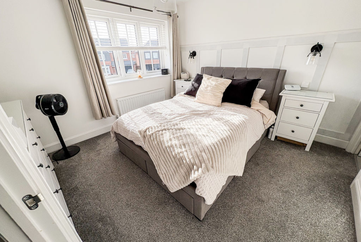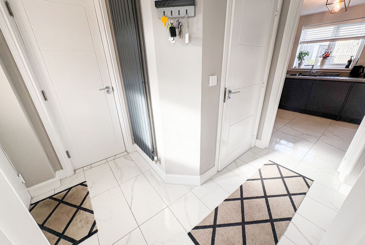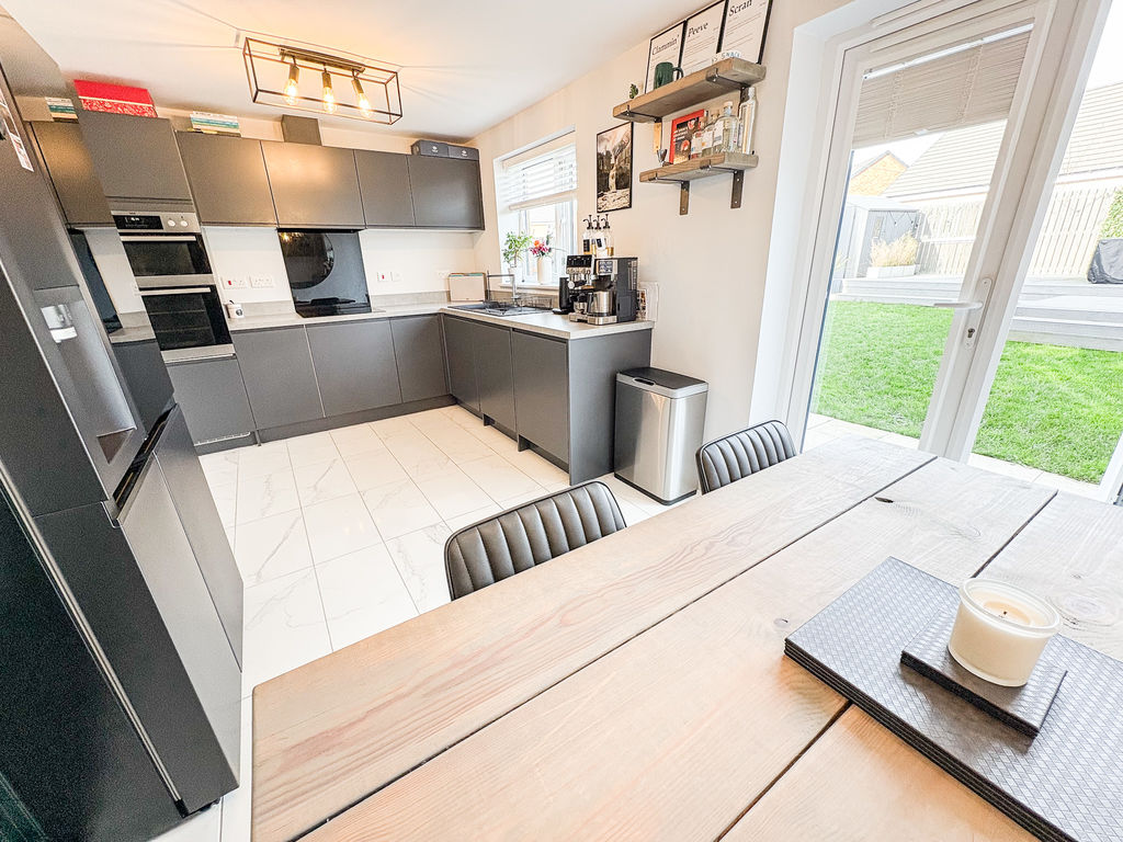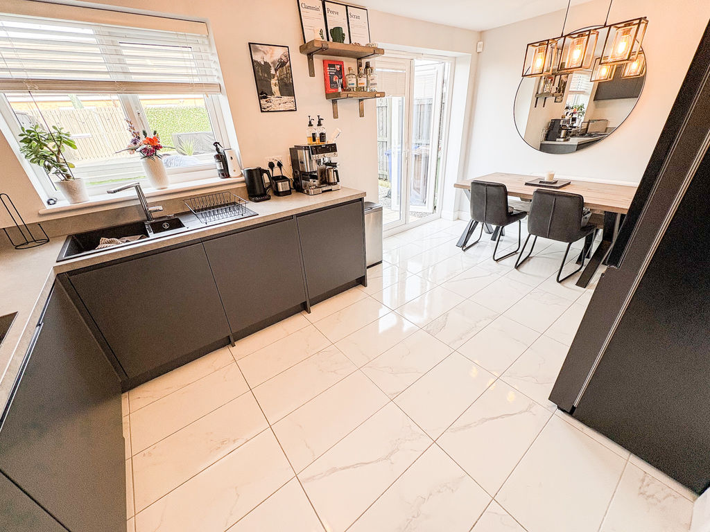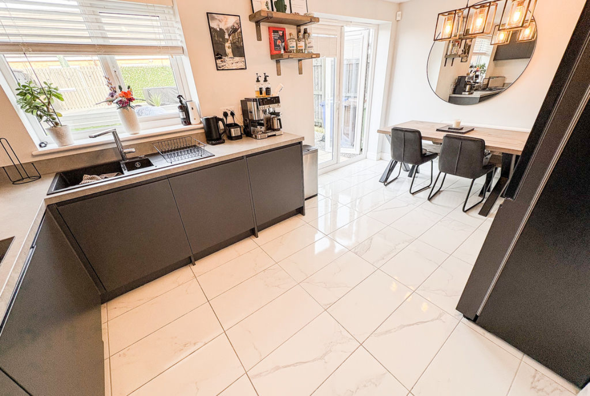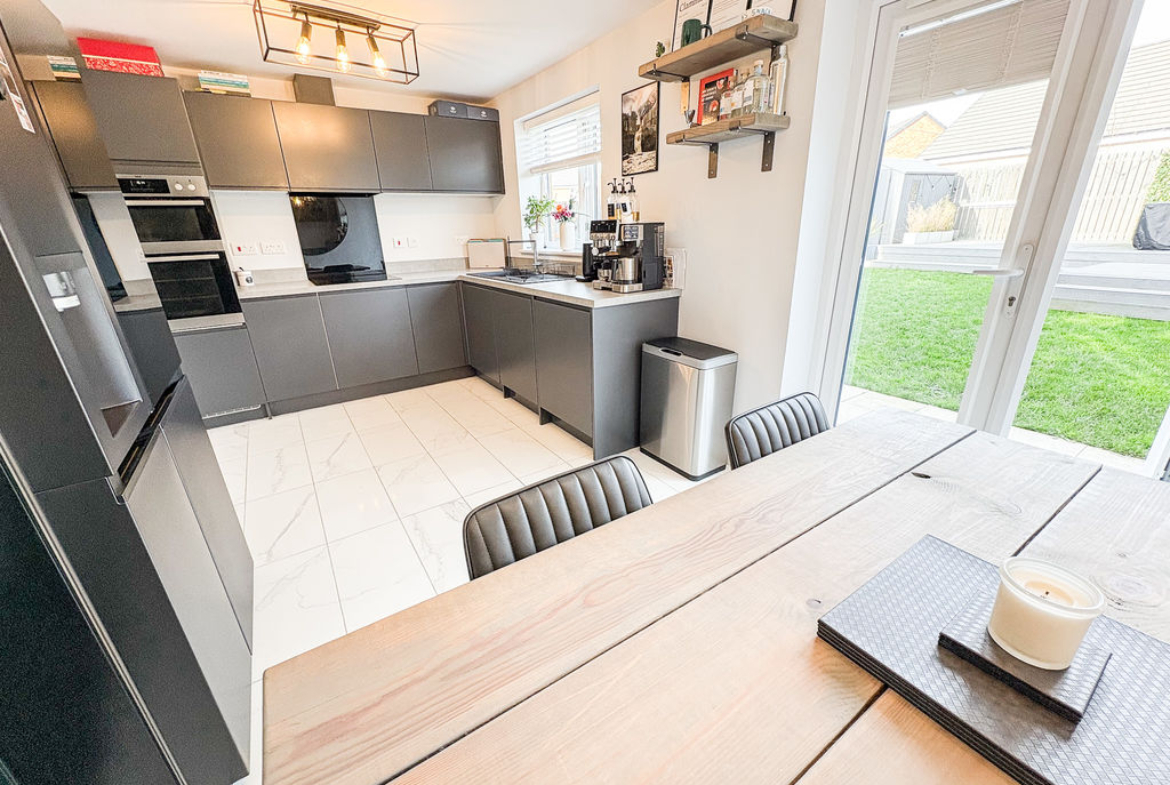 This attractive detached home offers three bedrooms and two bathrooms, combining contemporary design with a layout that suits modern family life. From the outside, the property stands out with its smart, modern frontage, private driveway parking, and the added benefit of an integral garage, providing both practicality and security.