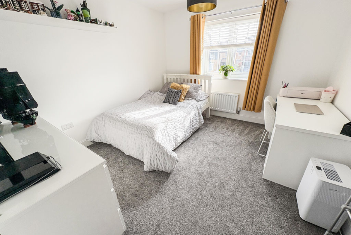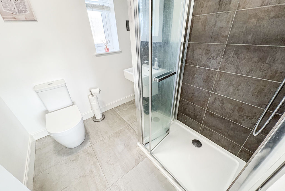 The reception room offers a comfortable and stylish place to relax, enhanced by contemporary décor, a feature wall, and plenty of space for seating. Upstairs, the property provides three well-proportioned bedrooms, including a principal bedroom that benefits from its own private en-suite shower room.