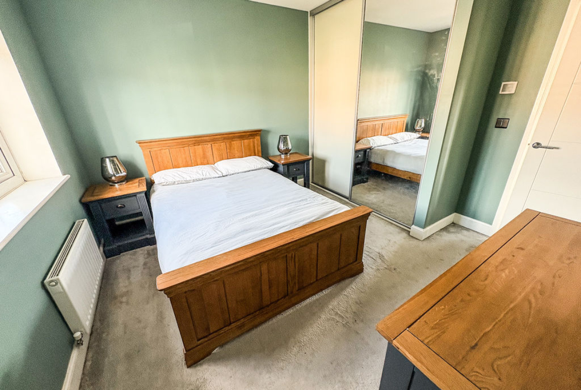 Radiator, double glazed window, attractive sliding mirrored robes, door to: