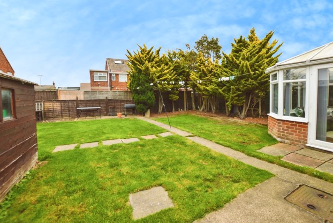 Fenced boundaries, laid mainly to lawn, patio, garden shed.