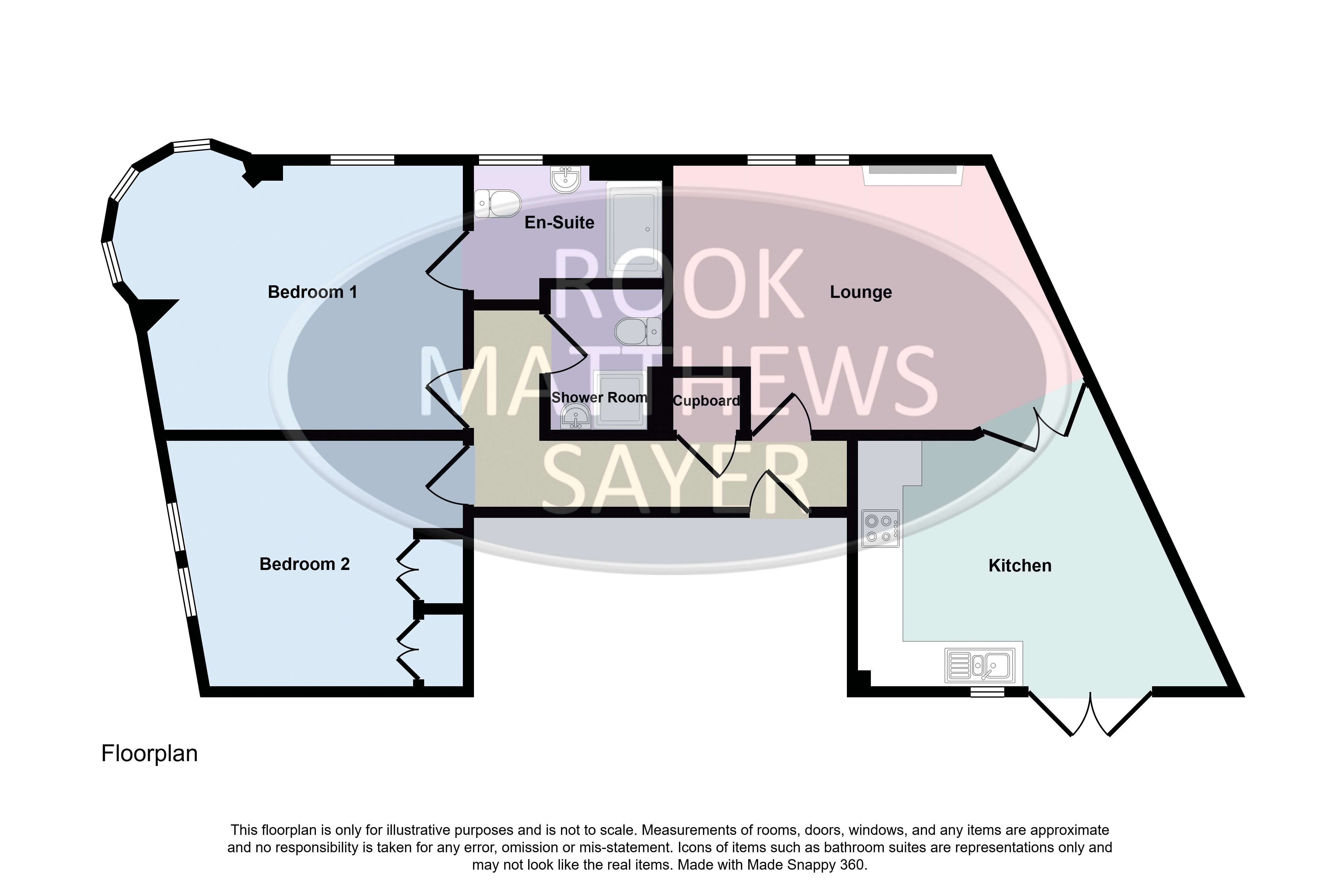 The rest of the layout comprises; most appealing master bedroom with feature corner turret window offering a two hundred- and seventy-degrees outlook and en-suite shower room/WC, second double sized bedroom and main shower/WC.