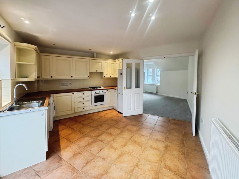 Kitchen: 16’1 max x 14’7 max narrowing to 11’0 (4.9m x 4.45m to 1.45m)