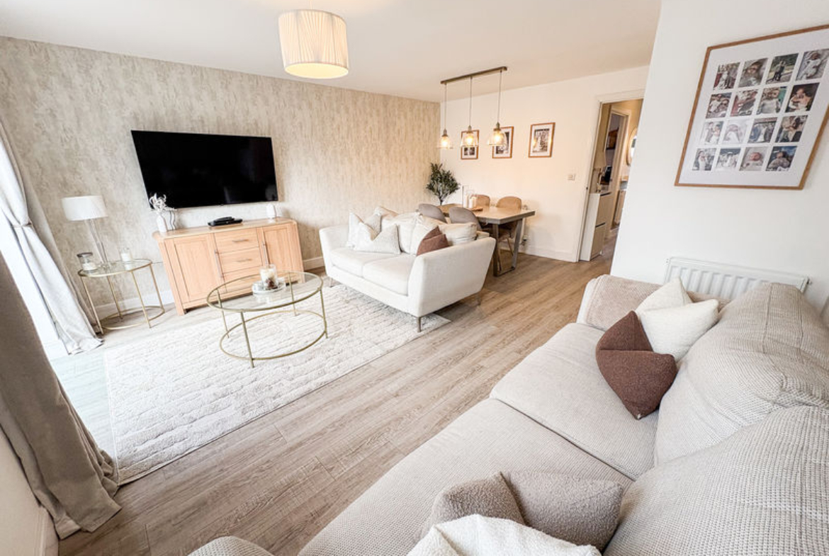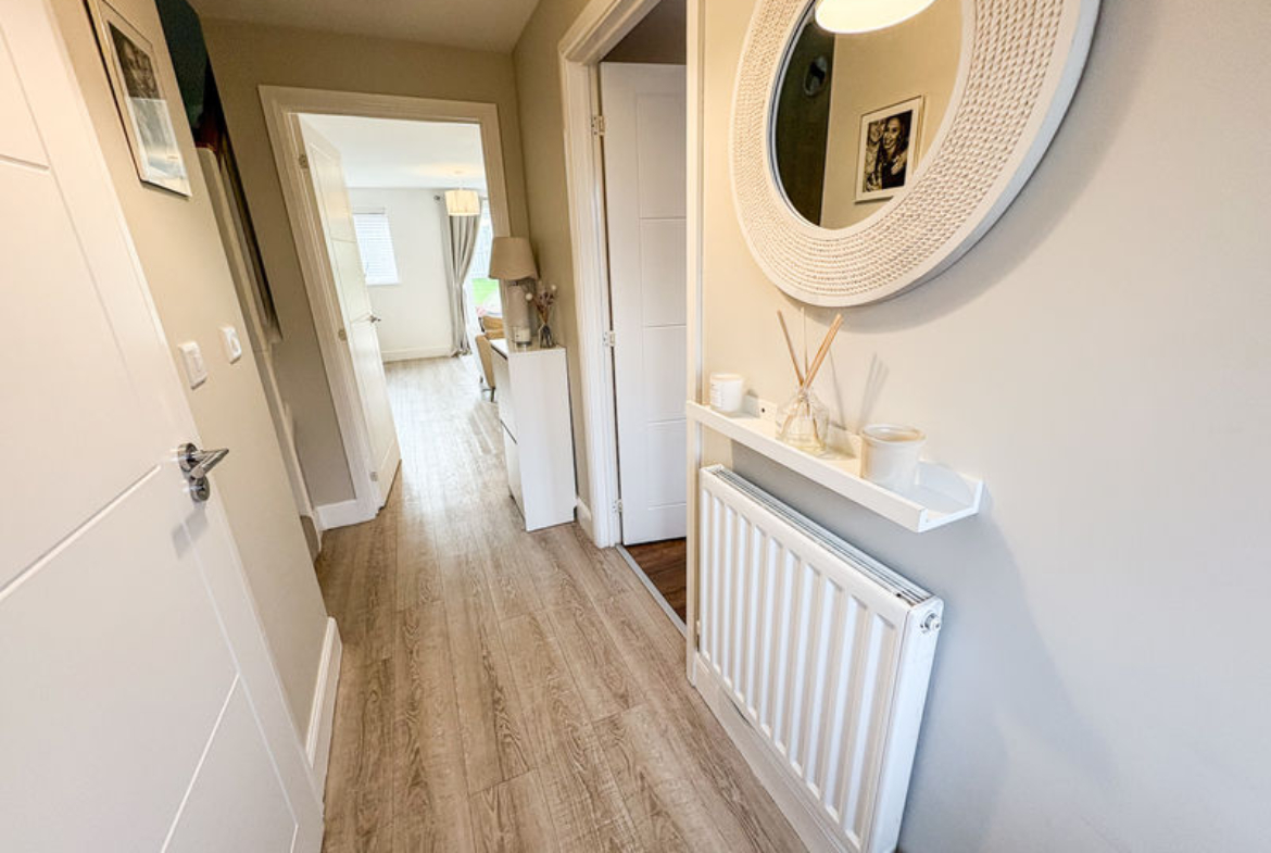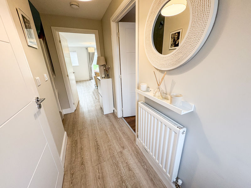 This luxurious and impeccably styled semi-detached family home occupies a prime position within the highly sought-after Portland Wynd development. Finished to an exceptional standard and enhanced by a host of quality upgrades throughout, the property enjoys a desirable westerly aspect and an improved, well-established rear garden, together with a rear garage and driveway. Ideally located close to the new train station and surrounded by lovely walks, the home perfectly balances convenience with a superb lifestyle setting. Internally, the accommodation is both elegant and practical, featuring a splendid kitchen with integrated appliances, a stylish downstairs cloakroom/W.C., and a spacious rear lounge/dining room where French doors open directly onto the garden, creating a wonderful space for entertaining and relaxed summer living. To the first floor are three beautifully presented bedrooms, including two generous doubles, with the principal bedroom benefiting from contemporary fitted wardrobes and a stunning en-suite shower room. Completing the accommodation is a gorgeous family bathroom, finished with mirrored walls, a white suite and modern tiling, further enhancing the refined feel of this exceptional family home.