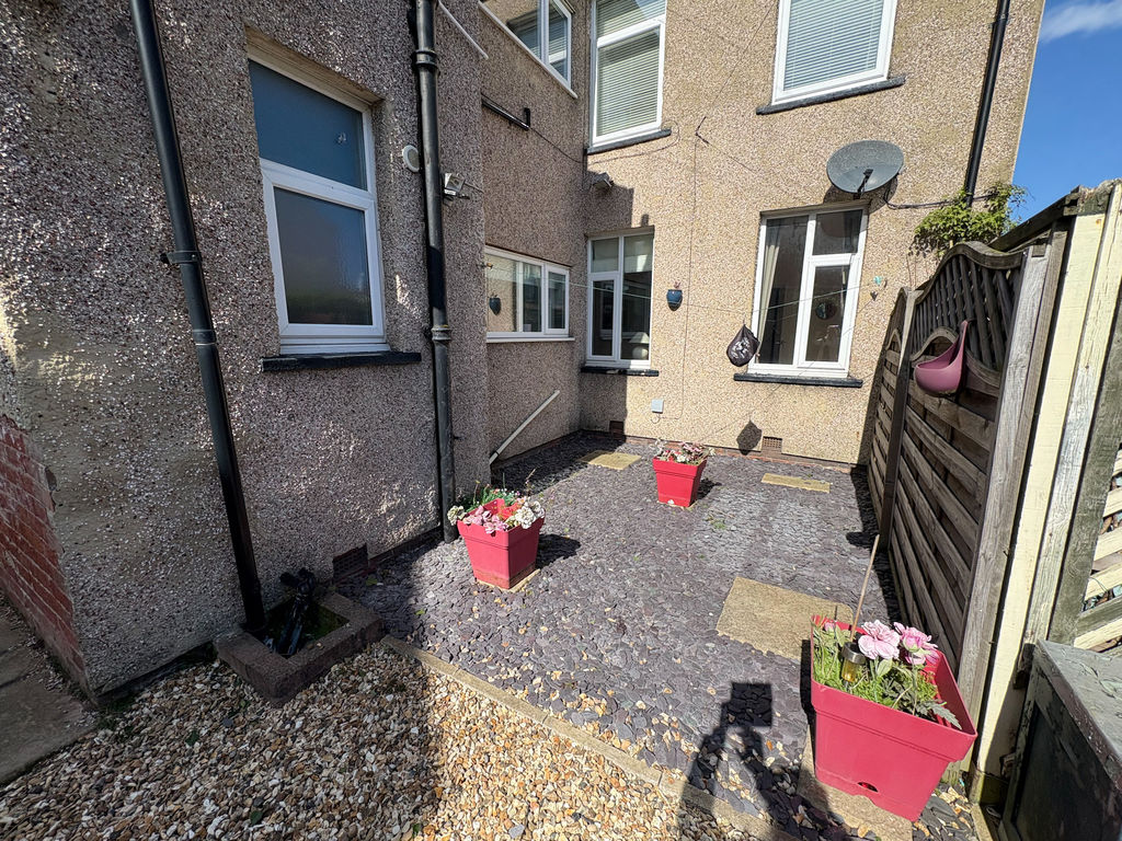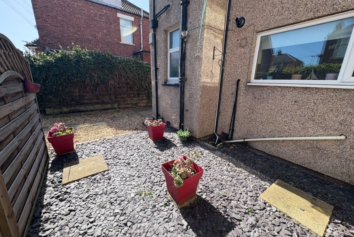 Private and enclosed rear patio garden. Beautifully presented, low maintenance with patio and fencing