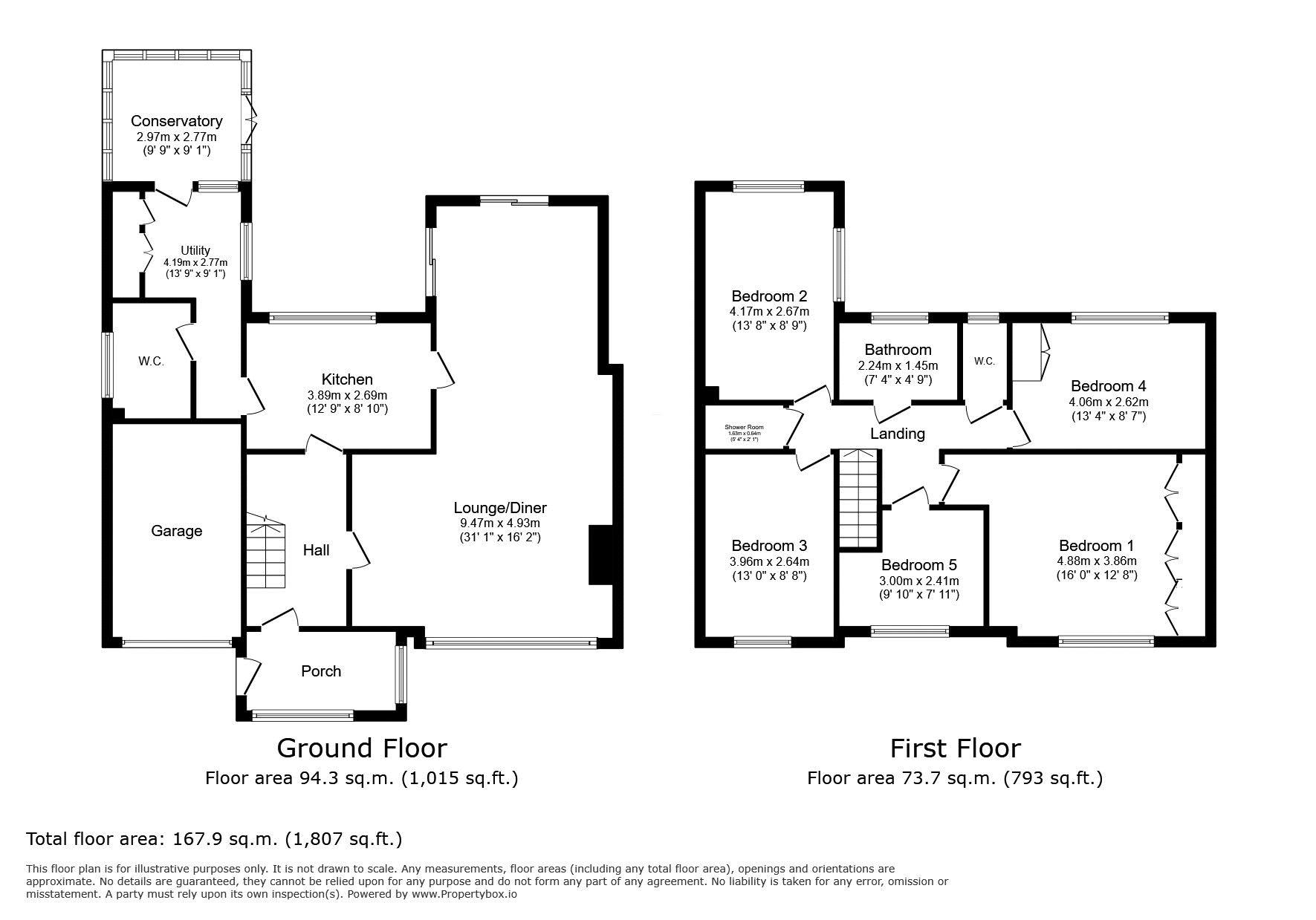 Conservatory: 9’9 x 9’1 (2.97m x 2.77m)