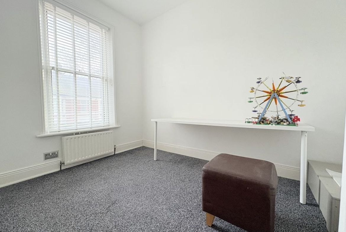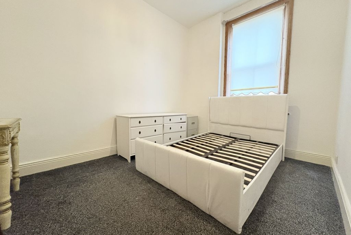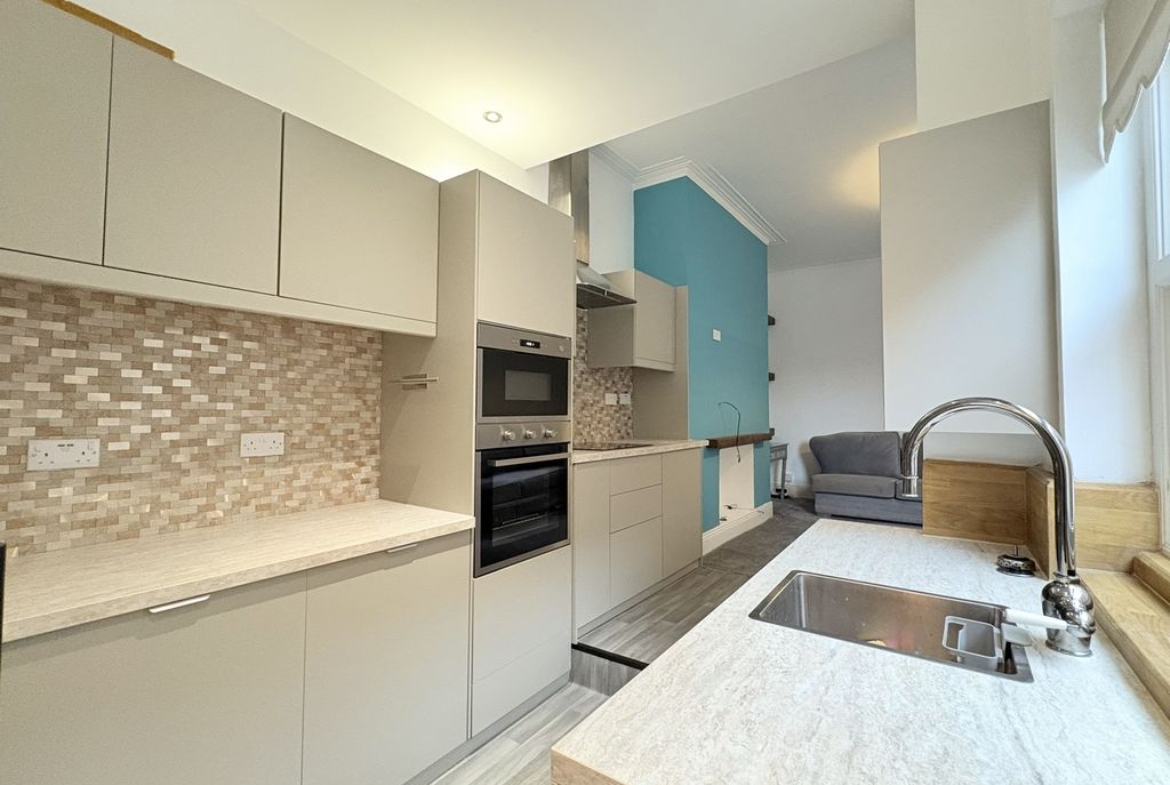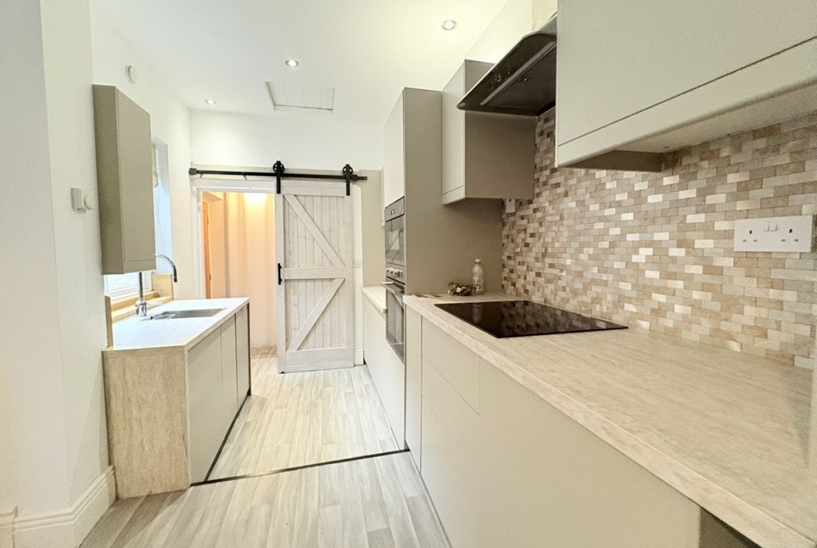 A spacious and characterful first floor flat set within a handsome period terrace on Queen Alexandra Road. With three bedrooms, a refitted kitchen and a surprisingly substantial loft space, the property provides both practicality and flexibility. The living room is a bright and welcoming space, offering excellent proportions for everyday living and relaxation. Its open connection through to the kitchen creates a natural flow between the spaces while still allowing each room to retain its own identity. The kitchen has been stylishly refitted with contemporary handleless cabinetry, integrated oven and hob, stainless steel extractor and mosaic tiled splashback. The clean, modern finish is complemented by a sliding barn-style door which adds a touch of character to the space. A practical advantage of the layout is the inclusion of both a separate WC and a modern shower room. The shower room is finished with warm-toned tiling and features a walk-in shower, vanity unit and heated towel rail. The three bedrooms are all well-balanced. The principal bedroom sits to the front of the property and enjoys a bay window, creating a bright and spacious room. The second bedroom provides another comfortable double, while the third bedroom offers flexibility as a guest room, nursery or home office. Above, the loft space adds an additional dimension to the property. Accessed via a hatch from the landing, the area is boarded with exposed beams and provides excellent storage with further potential for a variety of uses. Externally, the property benefits from a private rear yard with brick outbuilding, providing a low-maintenance outdoor space.