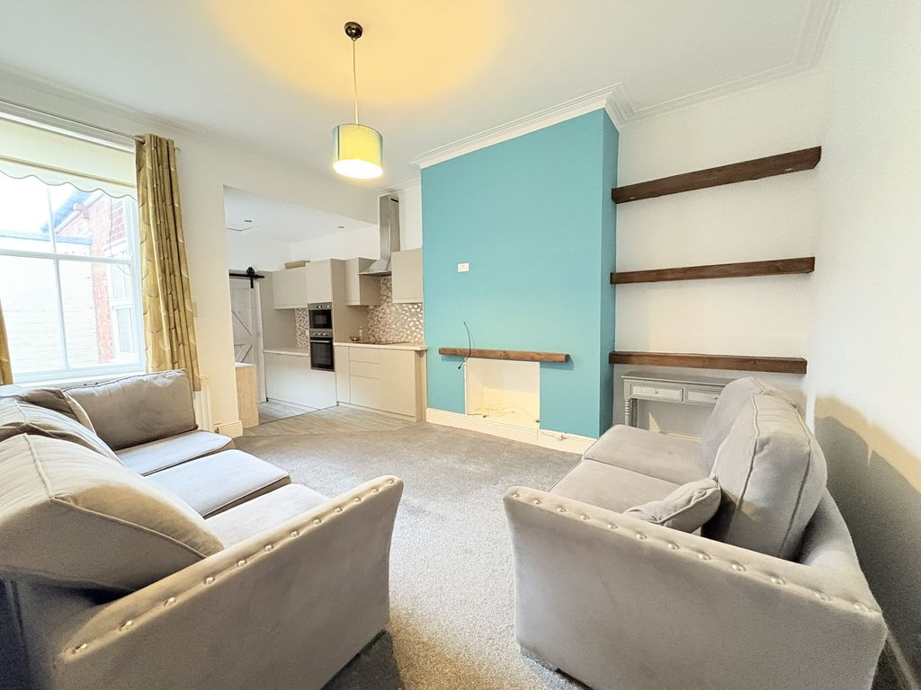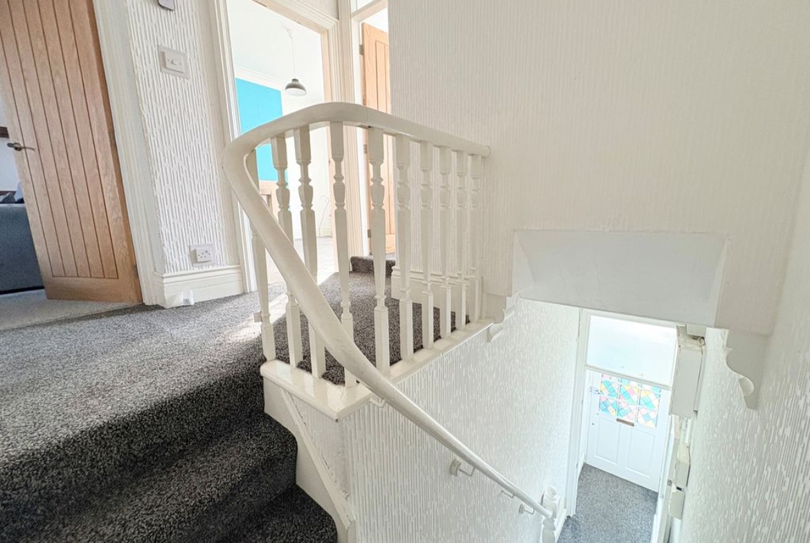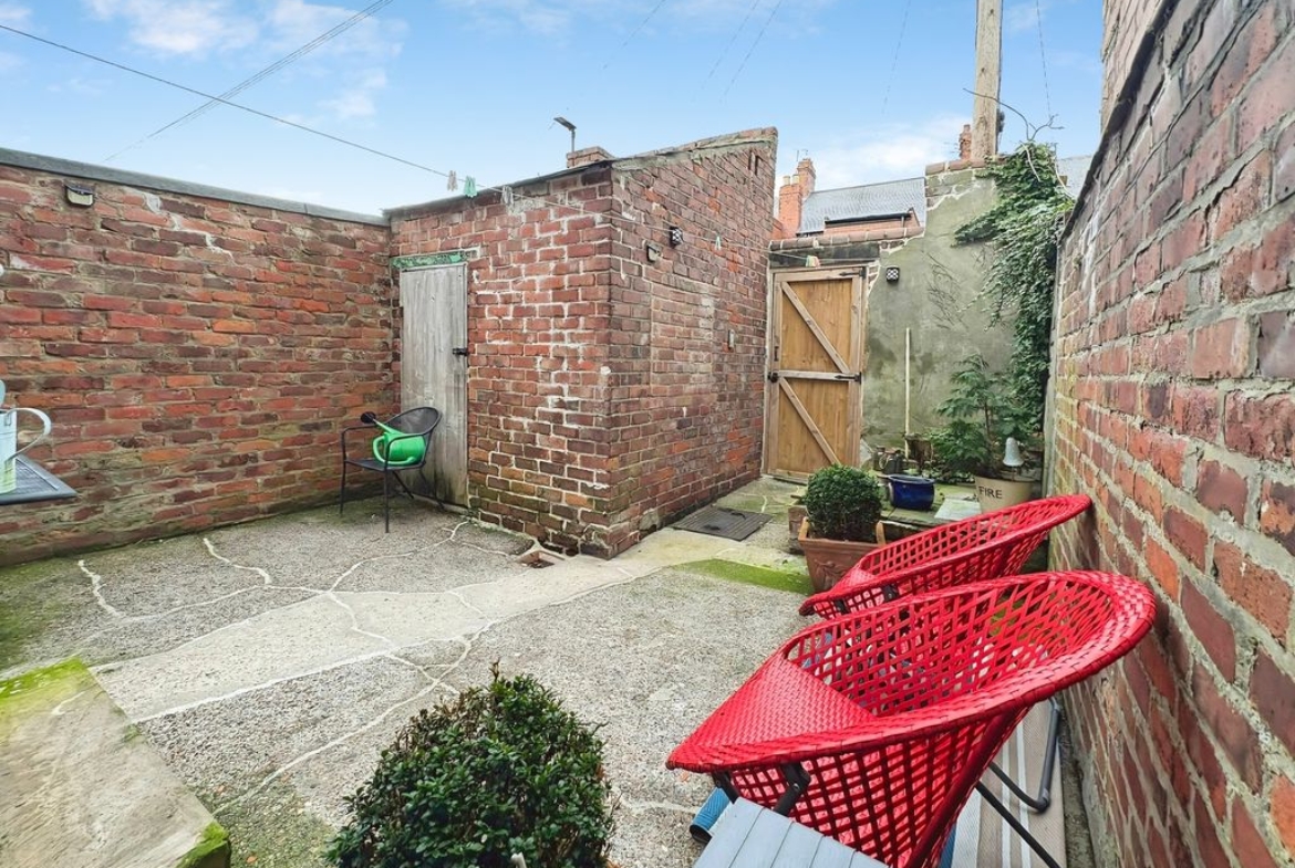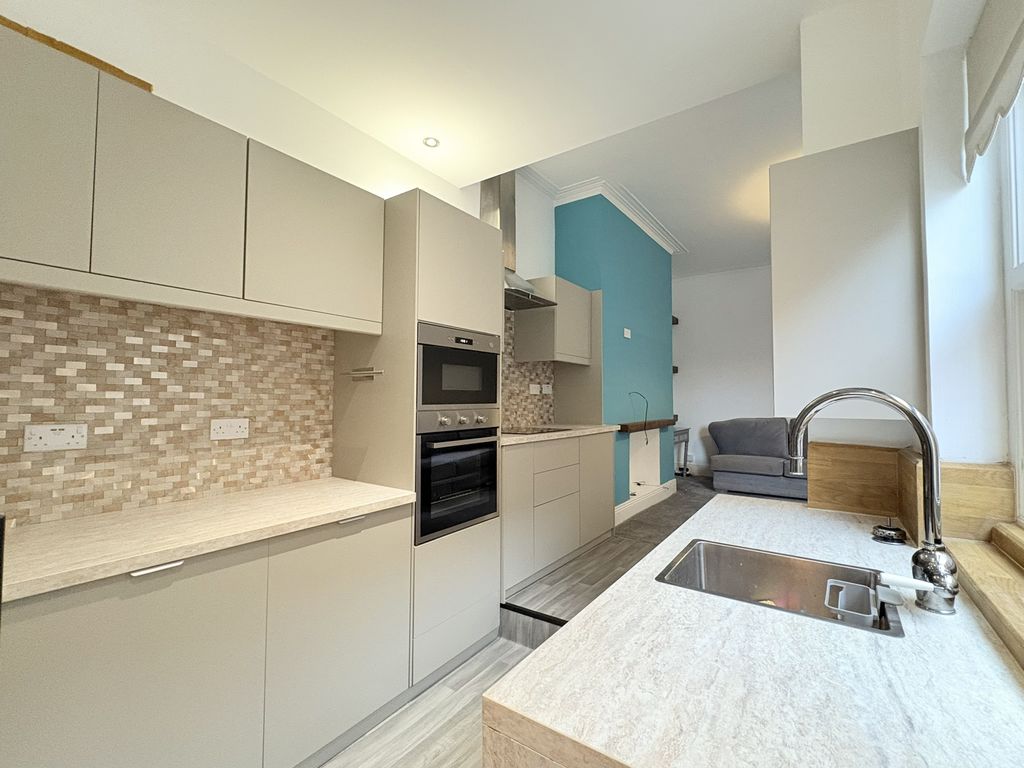 A spacious and characterful first floor flat set within a handsome period terrace on Queen Alexandra Road. With three bedrooms, a refitted kitchen and a surprisingly substantial loft space, the property provides both practicality and flexibility. The living room is a bright and welcoming space, offering excellent proportions for everyday living and relaxation. Its open connection through to the kitchen creates a natural flow between the spaces while still allowing each room to retain its own identity. The kitchen has been stylishly refitted with contemporary handleless cabinetry, integrated oven and hob, stainless steel extractor and mosaic tiled splashback. The clean, modern finish is complemented by a sliding barn-style door which adds a touch of character to the space. A practical advantage of the layout is the inclusion of both a separate WC and a modern shower room. The shower room is finished with warm-toned tiling and features a walk-in shower, vanity unit and heated towel rail. The three bedrooms are all well-balanced. The principal bedroom sits to the front of the property and enjoys a bay window, creating a bright and spacious room. The second bedroom provides another comfortable double, while the third bedroom offers flexibility as a guest room, nursery or home office. Above, the loft space adds an additional dimension to the property. Accessed via a hatch from the landing, the area is boarded with exposed beams and provides excellent storage with further potential for a variety of uses. Externally, the property benefits from a private rear yard with brick outbuilding, providing a low-maintenance outdoor space.
