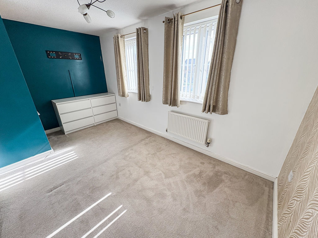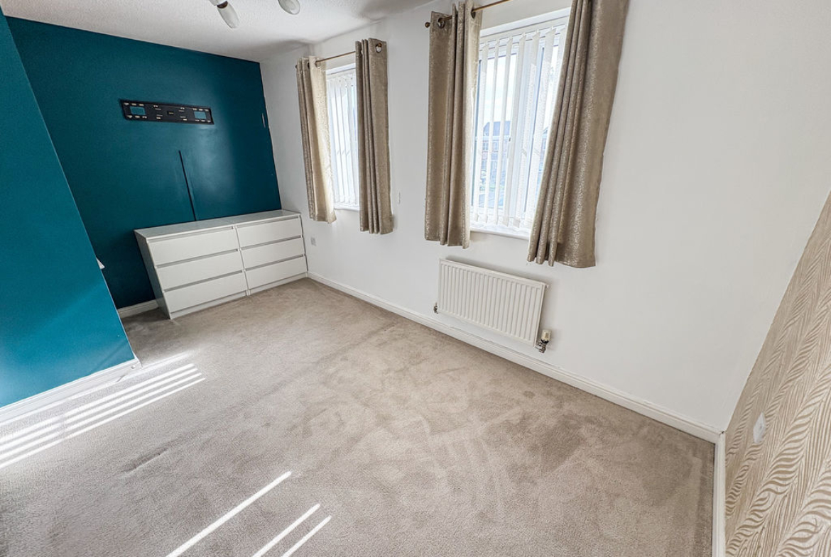 BEDROOM THREE: (rear): 6’86 x 7’30, (2.09m x 2.21m), double glazed window to rear, single radiator and fitted wardrobes and drawers.