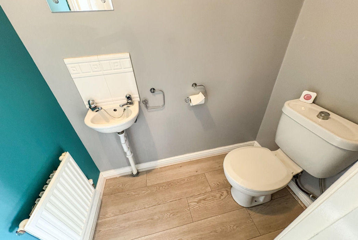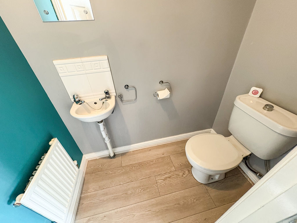 DOWNSTAIRS CLOAKS/W.C.: low level wc, wash hand basin and single radiator.
