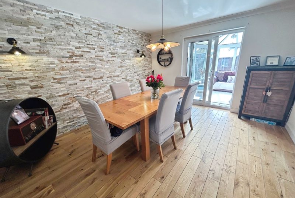 The property features a cosy lounge with direct access to the rear garden, and a stunning cottage-style kitchen, thoughtfully designed for both functionality and aesthetics. Adjacent to the kitchen, you will find a separate dining room, perfect for family meals or hosting dinner parties. This dining area seamlessly leads into a delightful conservatory, providing an inviting space flooded with natural light—perfect for year-round enjoyment.