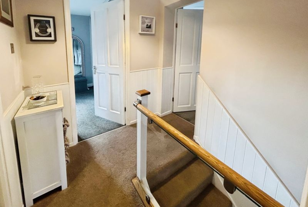Accommodation comprises three well-proportioned bedrooms. The principal bedroom is a generous double, complete with a modern en-suite for added privacy. The second bedroom is also a spacious double, while the third bedroom offers a versatile single room, ideal as a child’s room, guest space, or home office.