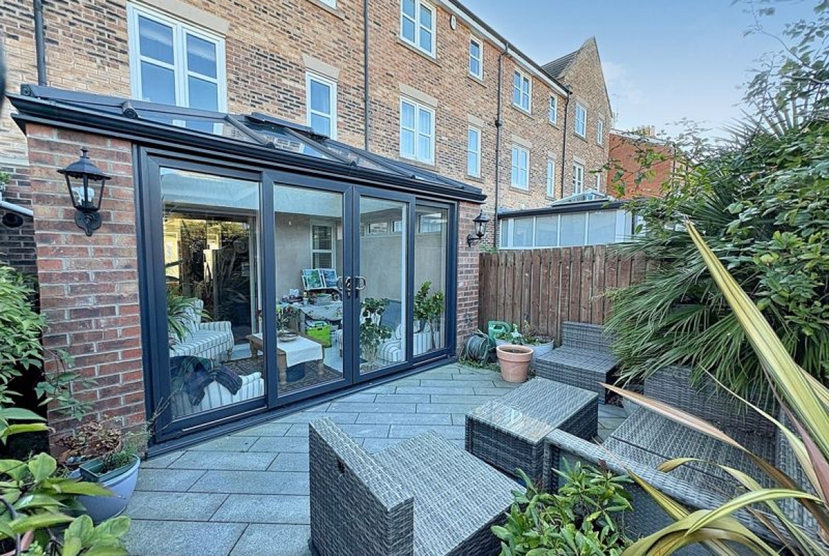 Enjoying an elevated position with breath-taking views over the River Tyne, this beautifully presented townhouse offers spacious, light filled accommodation across three impressive floors. The ground floor boasts a superb open-plan layout, featuring a stylish kitchen dining area complete with modern fitted units, built in appliances. To the rear, a stunning orangery which is flooded with natural light from a vaulted glass roof, this space opens directly onto the rear yard area creating a wonderful indoor-outdoor living experience that’s perfect for entertaining or relaxing. The first floor offers a bright and welcoming living room featuring a charming bay window that frames stunning river views, creating an ideal space to unwind and enjoy the outlook. There is also a well-proportioned double bedroom and a stylish family bathroom complete with a modern white suite and shower over bath. The second floor hosts the impressive principal bedroom, a generous double room with its own en-suite shower room. From here, you can enjoy stunning elevated views over the river and surrounding landscape, creating a tranquil and private retreat. Externally, the property benefits from an attractive, rear garden featuring stylish paved seating area ideal for outdoor dining. To the front, there is further kerb appeal with a South-facing town garden perfect for soaking in the sun and views all day. There is also an allocated car port in a secure car park which is accessed to the rear of the property. Situated in a prestigious riverside setting, this beautiful home is within easy reach of the popular North Shields Fish Quay, renowned for its excellent selection of bars, restaurants, and independent shops. The golden sands of nearby Tynemouth, with its boutique stores and vibrant cafe culture, are also just moments away. Excellent transport links ensure quick access to Newcastle city centre and the wider region. This exceptional townhouse offers a rare opportunity to acquire a luxurious riverside residence that combines modern elegance with coastal charm, a truly special home in an outstanding location. Leasehold: 125 years from 2001, 99 years remaining, Service Charge: £482.30 per annum includes building insurance, EPC:C, Council Tax Band: D. Gas, Electric, Water, Heating, Drainage: Mains Connected. Broadband: Fibre, Mobile Phone Blackspot: No.
