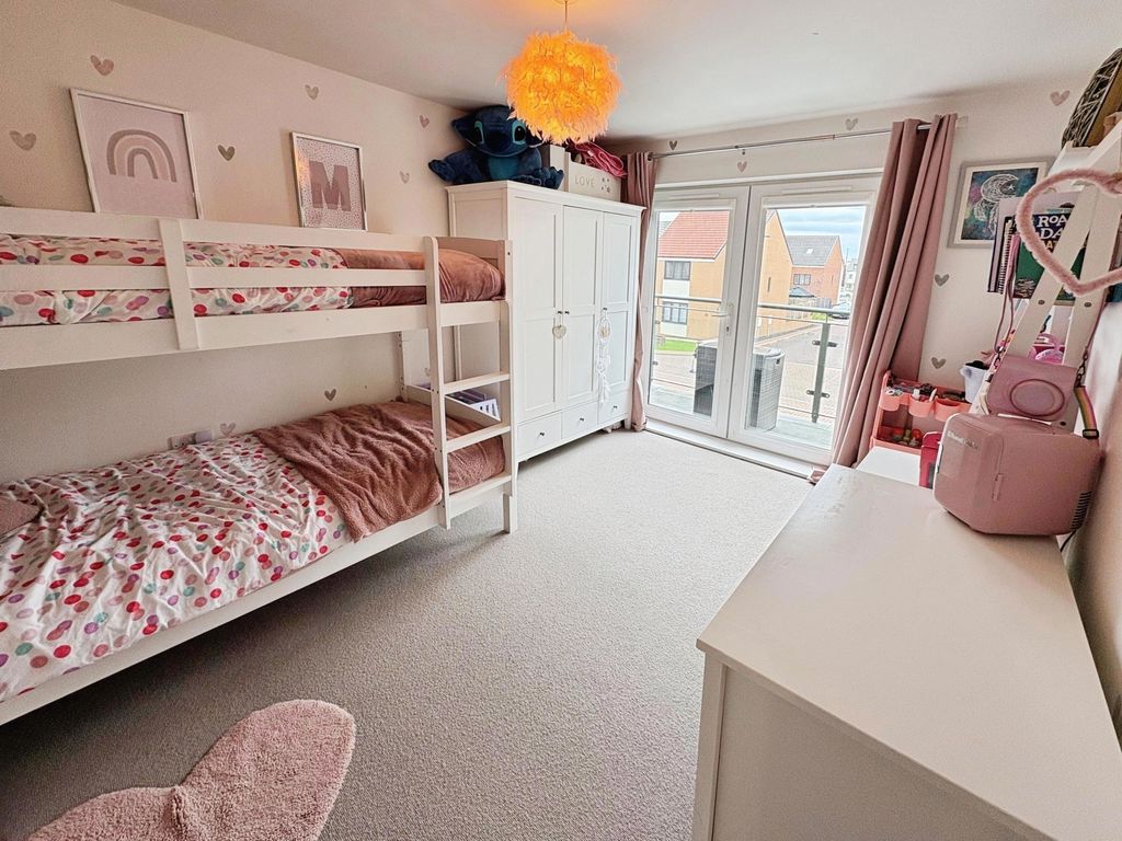 The first floor is equally impressive, featuring a generous landing and four well-sized bedrooms, providing ample space for a growing family. Bedroom two benefits from French doors leading to a delightful balcony. The master boasts fitted wardrobes and a stylish en-suite, while the attractive family bathroom ensures convenience for all.