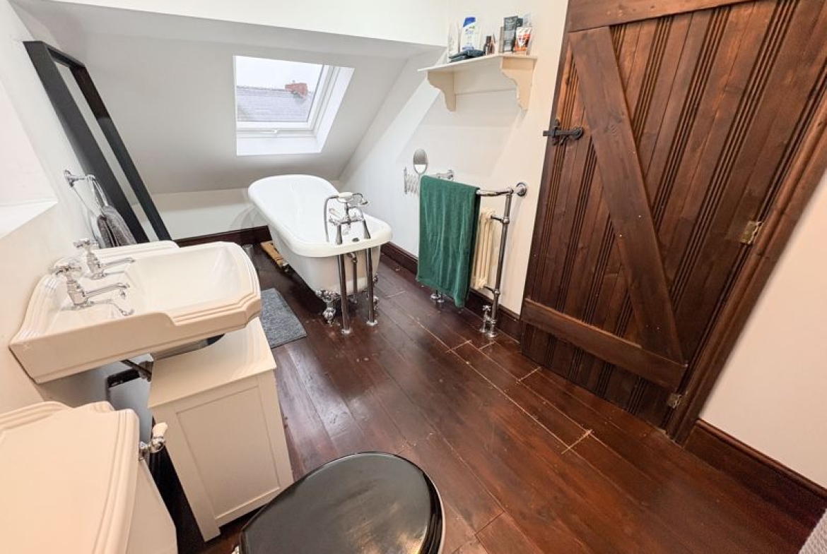Double glazing to side, low level WC, wash hand basin, heated towel rail and free standing bath