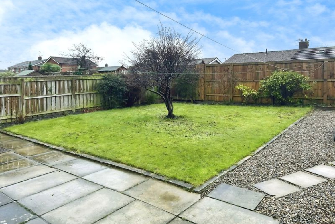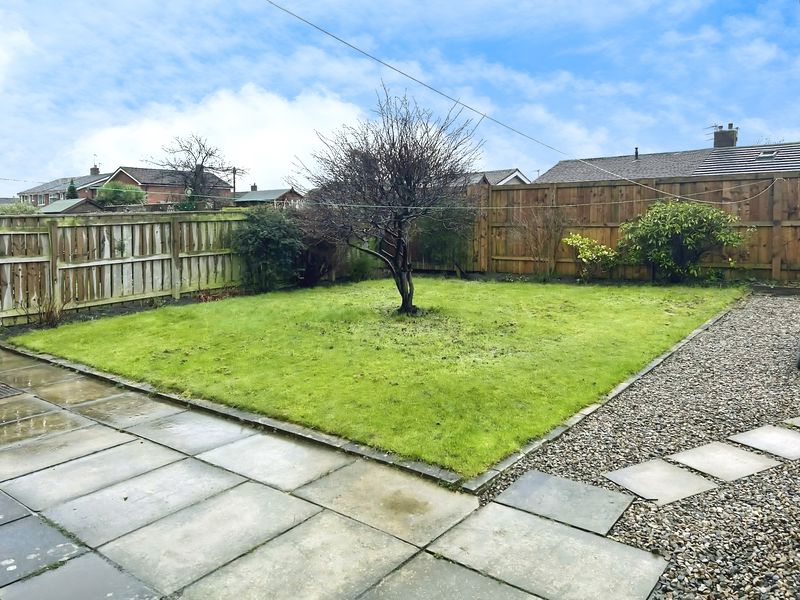 Low maintenance front garden, graveled., driveway leading to garage. Rear garden laid mainly to lawn, patio area, bushes and shrubs, graveled area.