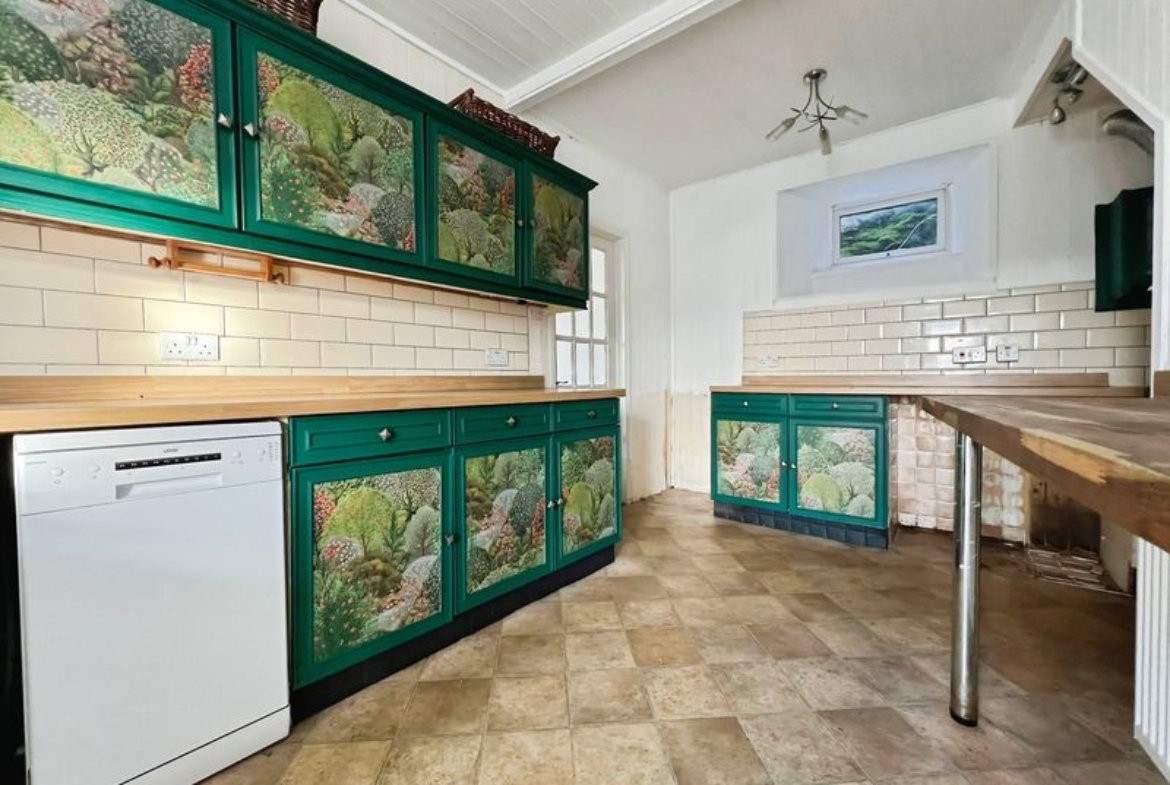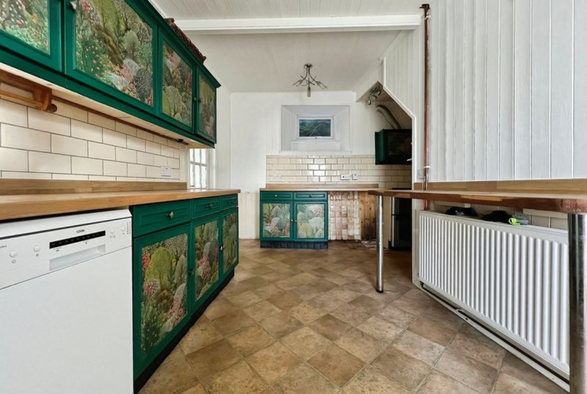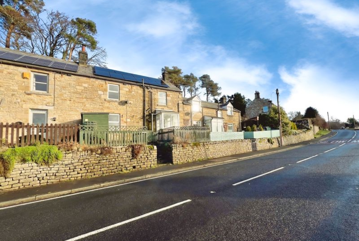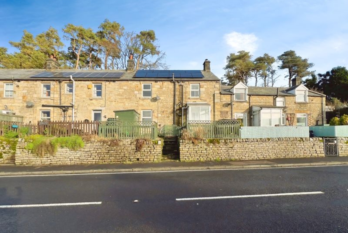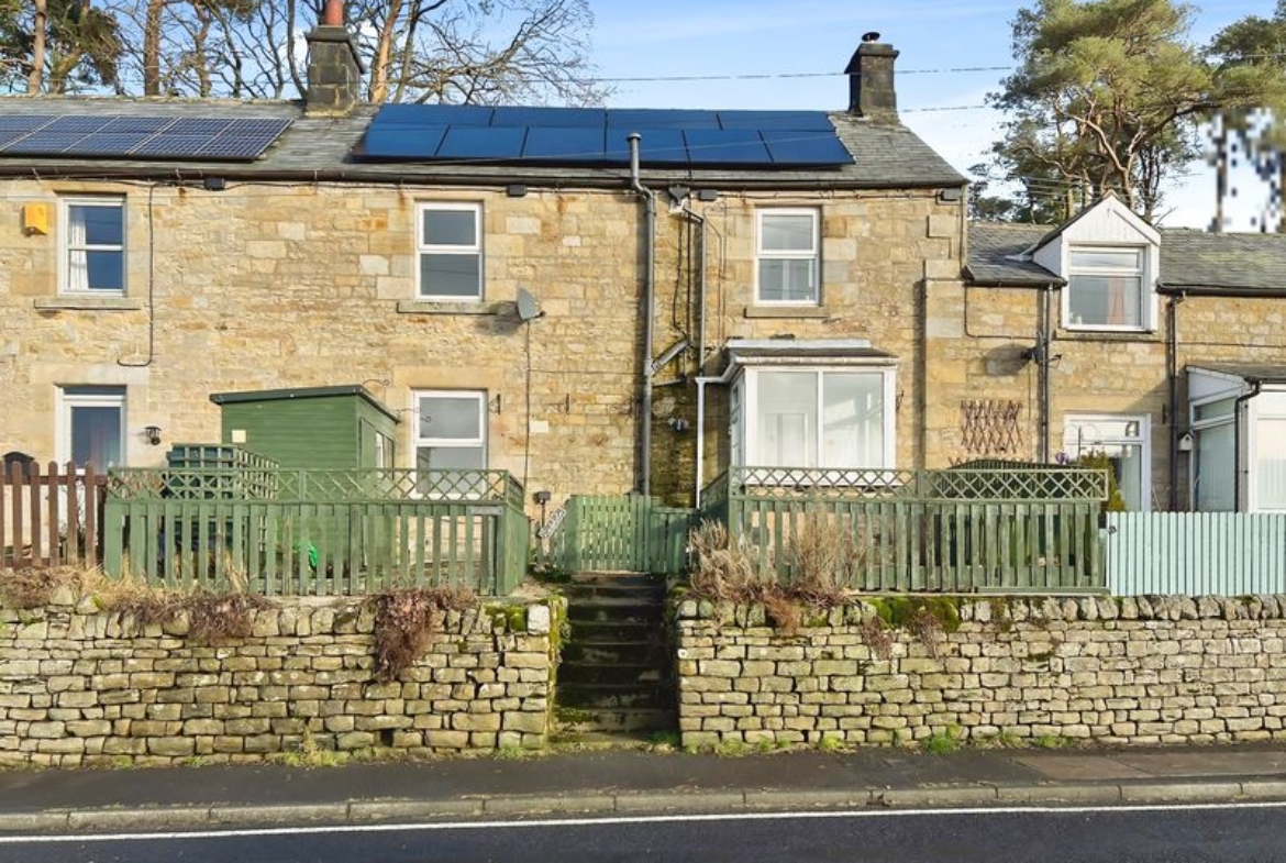 This neutrally decorated two-bedroom terraced house is for sale in Rochester, near Otterburn, within the Northumberland National Park. The property offers a single, spacious reception room with a log burner and open views, creating a focal point for the home. The kitchen provides ample storage, and there is one bathroom with a shower over the bath. From the bathroom, a staircase leads to a boarded loft, offering additional usable space.
