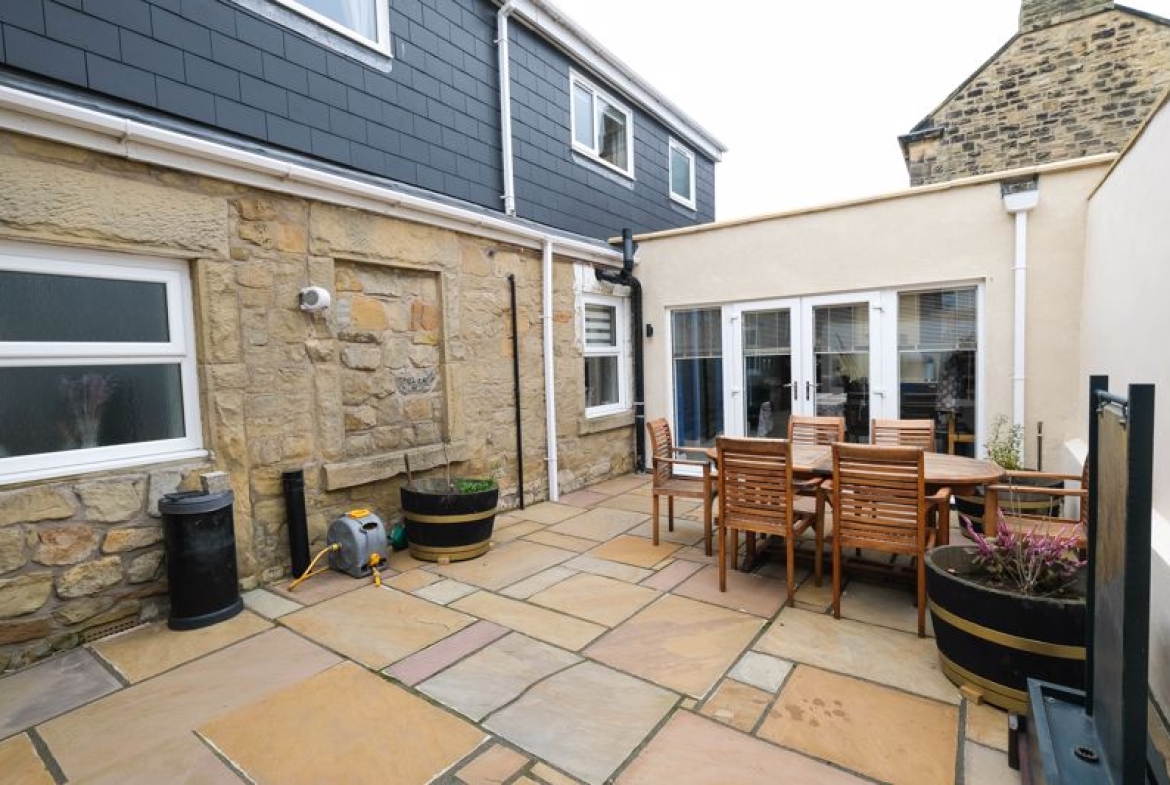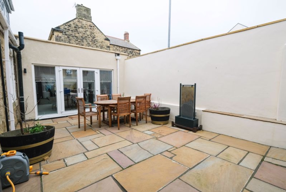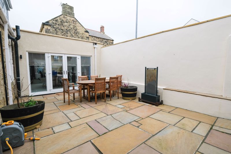 Outside the rear paved courtyard is a tranquil and sunny retreat, perfect for outdoor dining or simply to sit and enjoy the warmer months of the year. A side gate leads alongside the property to the front. Gated steps to the attractive paved frontage with a variety of plants accesses the main entrance door.