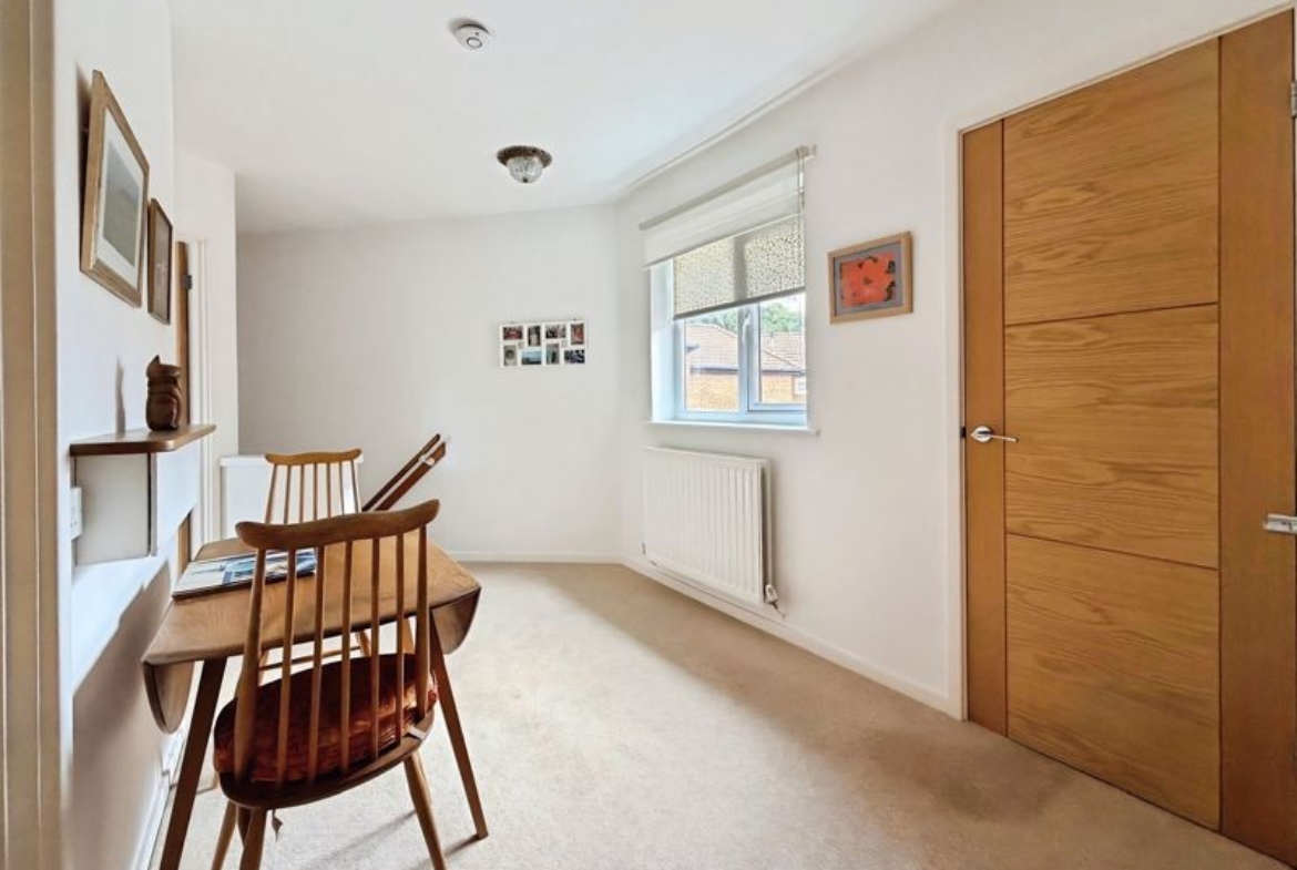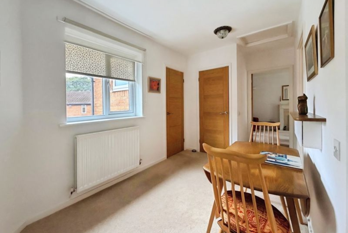 There are two generously proportioned double bedrooms. The principal bedroom features a walk-in closet, offering ample storage space and a touch of luxury. The second double bedroom provides flexibility for guests or additional accommodation. The spacious hallway has the versatility of being a dining space due to the size.
