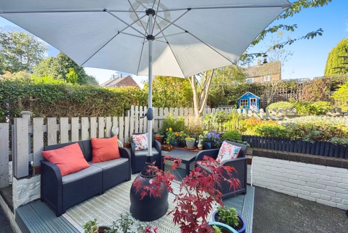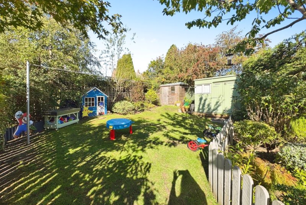 To the rear of the property there is an enclosed lawned garden with decking, shed and workshop.  To the front there is a garden with a driveway providing off street parking.