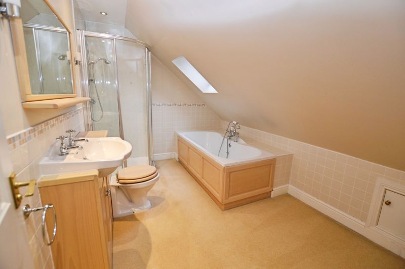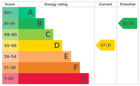 Upstairs, there are three double bedrooms, with two further on the ground floor. The master bedroom stands out for its generous proportions, and one additional bedroom is well-suited for use as a home office. There are two bathrooms, with one on the ground floor and another on the first floor.