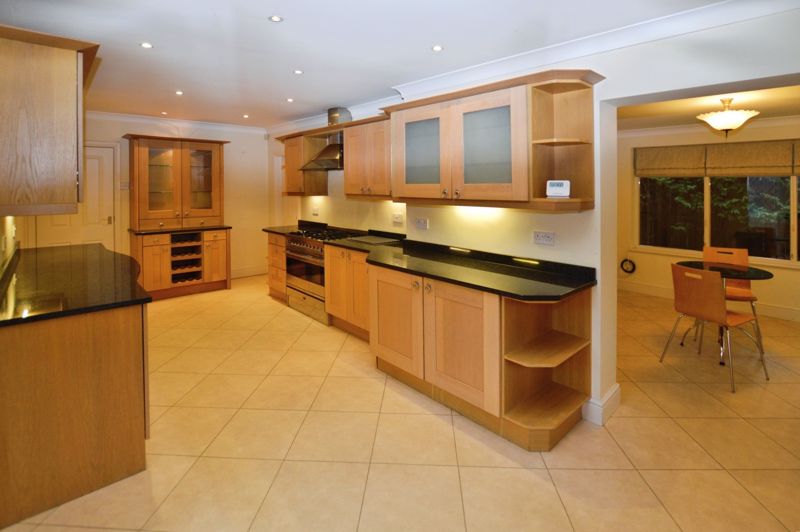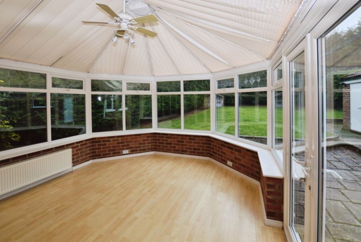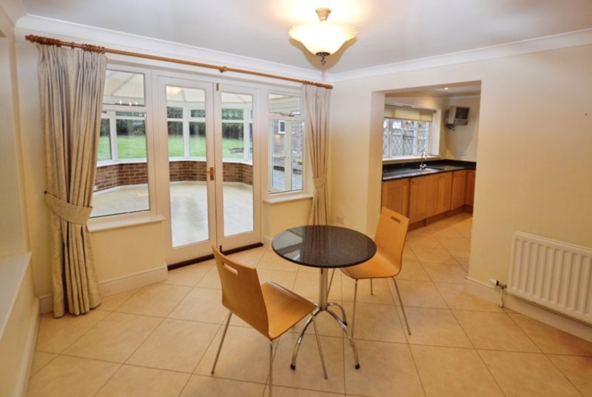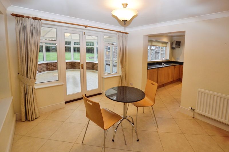 There are three reception rooms, including a formal living room with large windows and a formal dining room. The conservatory leads directly onto the garden, providing access to outdoor space for relaxing or entertaining. The kitchen is finished with granite countertops and offers ample storage, as well as a semi-open plan design to the breakfast room.