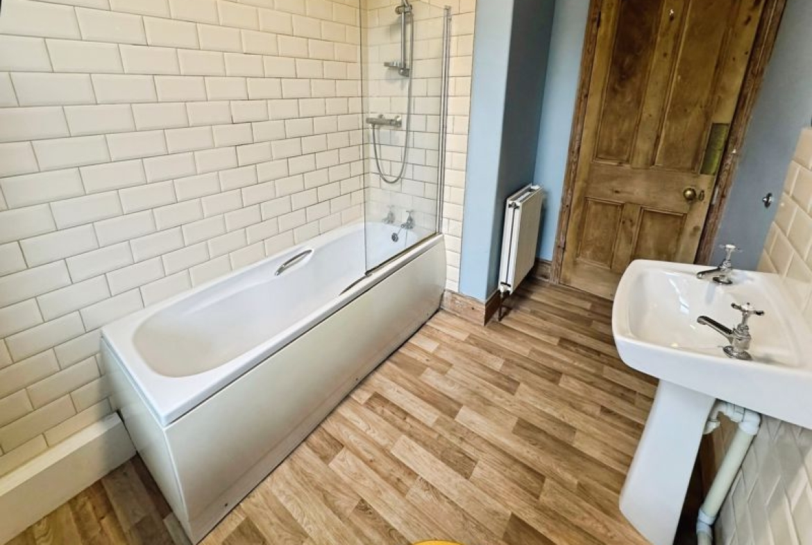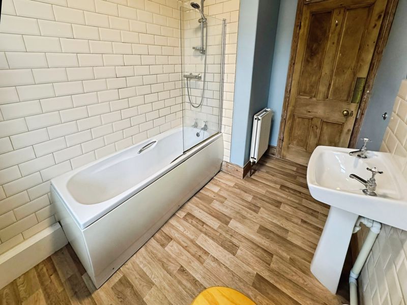 The bathroom is generous in size, offering, WC, hand wash basin and bath with mains shower over.