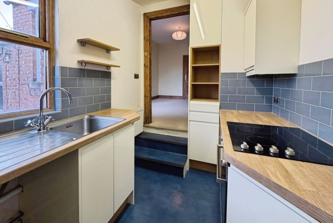 The kitchen is off the lounge and has a door leading to the rear staircase