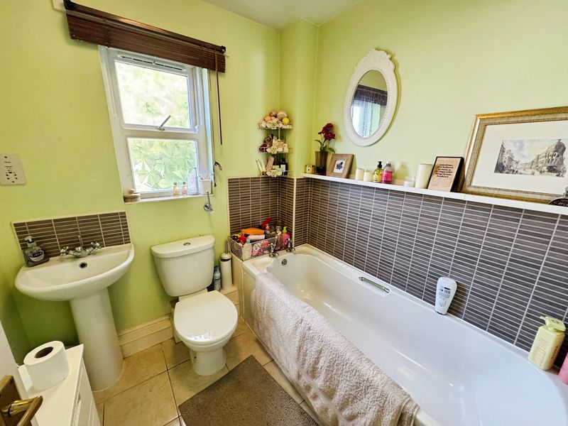 UPVC window, bath, low level wc, wash hand basin, part tiled and radiator.