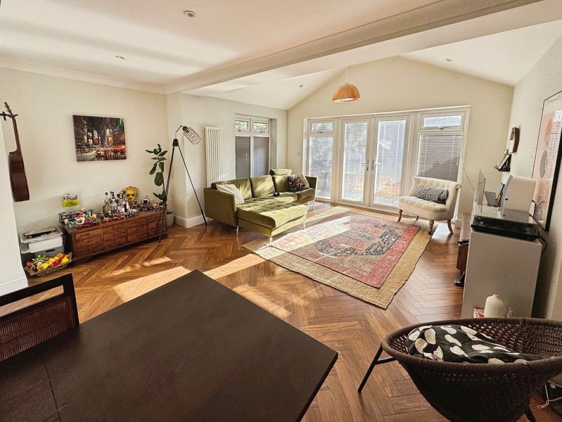 Extended. UPVC French doors, UPVC windows, solid wood flooring, vertical radiator and radiator.