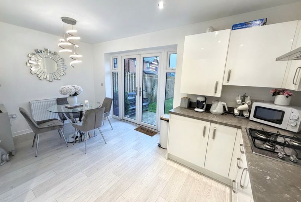 • Gorgeous Dining Kitchen with Appliances and Doors to Garden