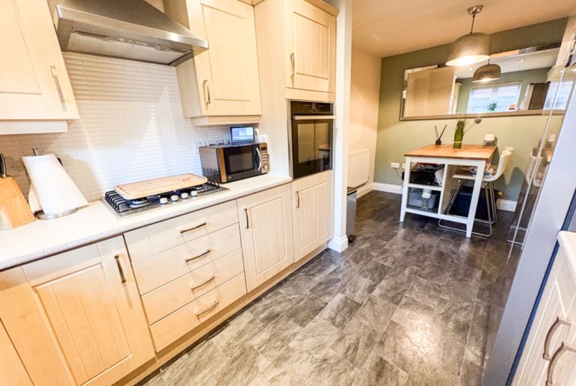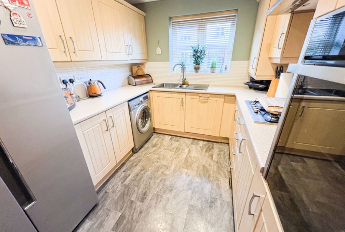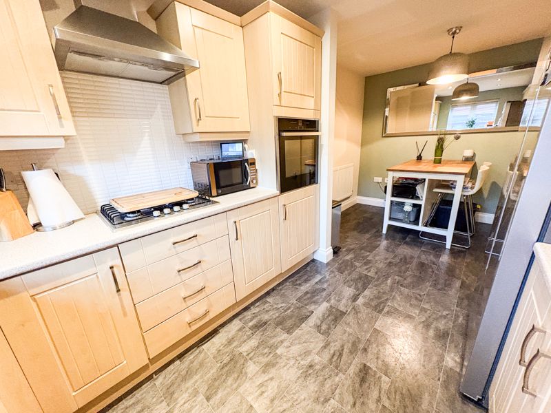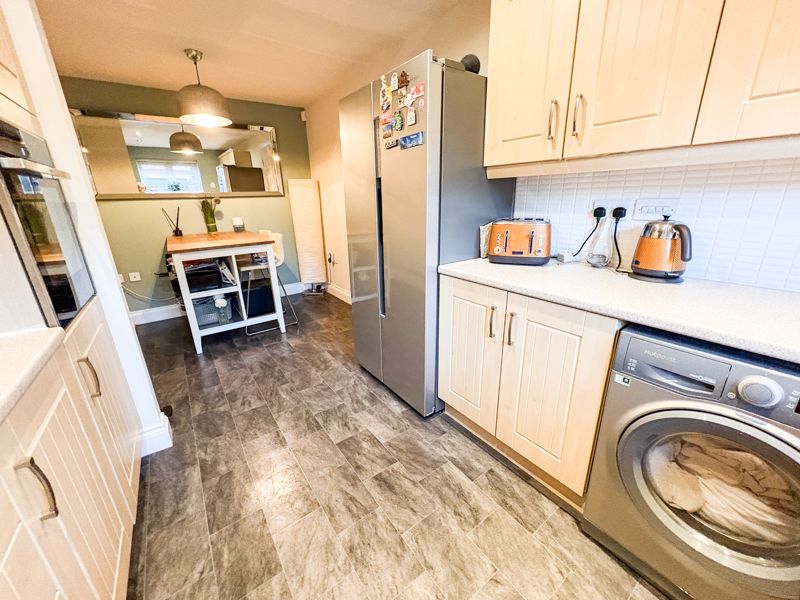 Double glazed window to front, wall and base units, work tops, fitted gas hob and electric oven, stainless steel extractor, space for fridge/freezer, plumbed for automatic washing machine and dishwasher, tiled splash back, spotlights, radiator.