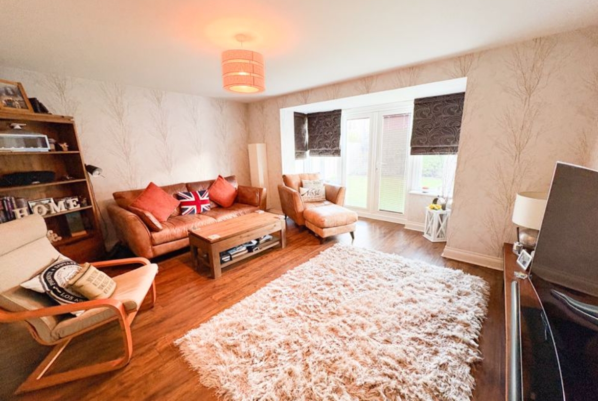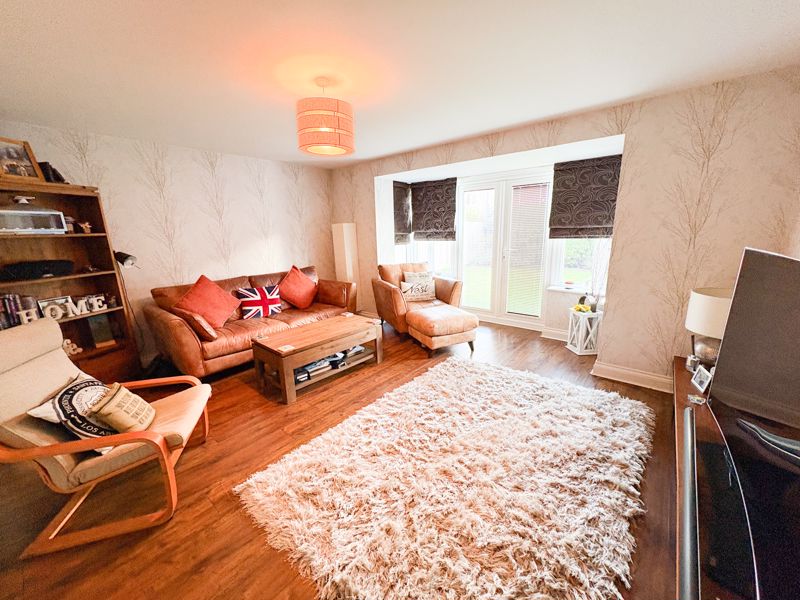 LOUNGE 15’42 x 14’50 (4.70m x 4.41m) max measurements into window, double glazed French door to rear, laminate flooring.