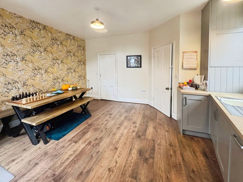 Dining Room: 17’7 x 14’10 reducing to 6’6 (irregularly shaped) (5.36m x 4.52m x 1.98m)