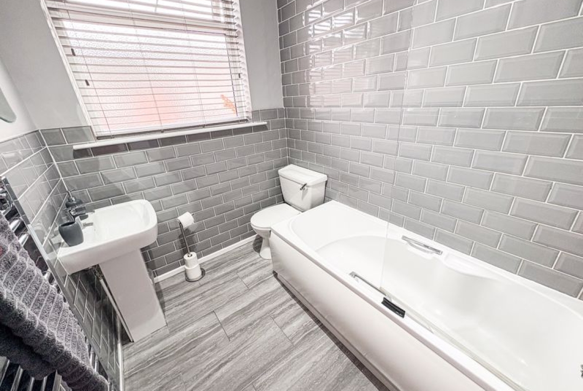 FAMILY BATHROOM: 3 piece suite comprising panelled bath, shower over, hand basin, low level wc as well as a heated towel rail and double glazed window to rear.