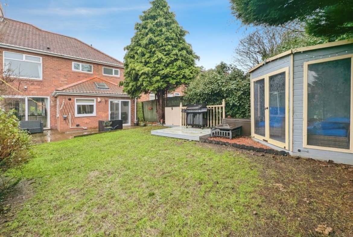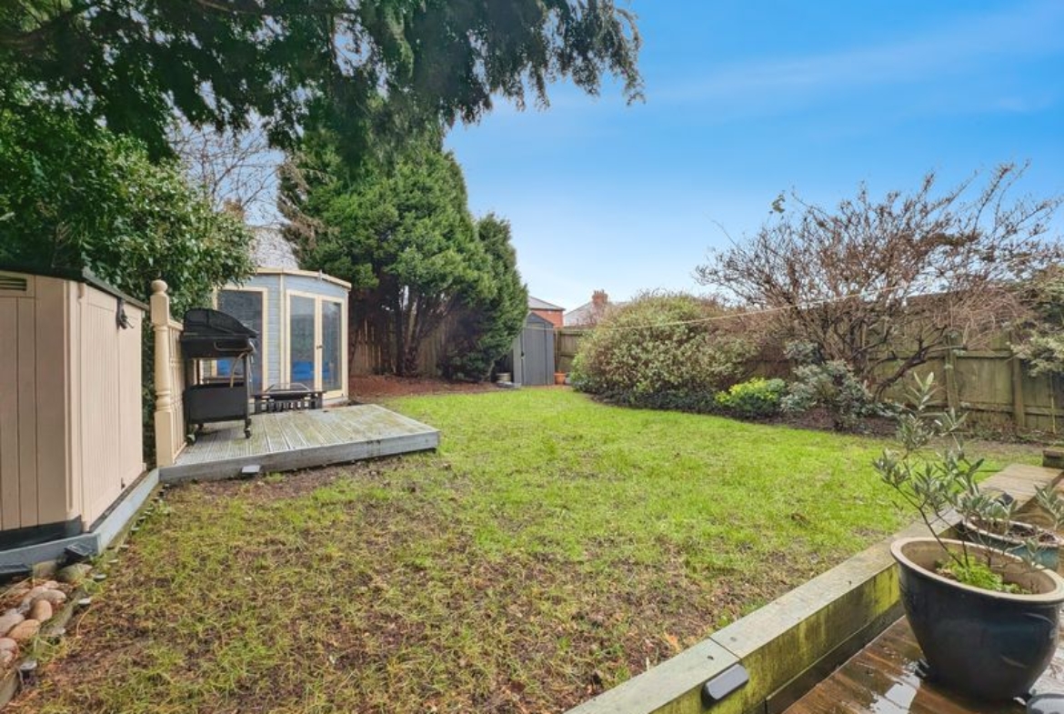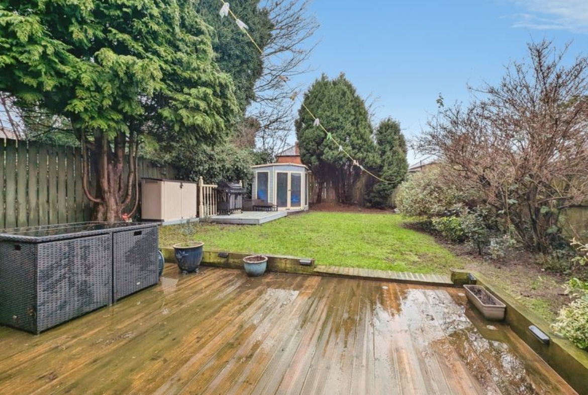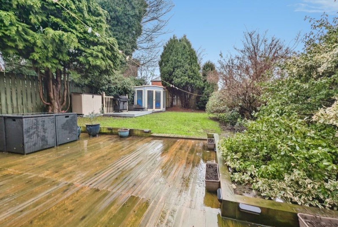 Externally, the property offers a large driveway with parking for two cars. To the rear, there is a garden with both decking and grass areas, together with a summer house, providing flexible outdoor space for relaxation or play.