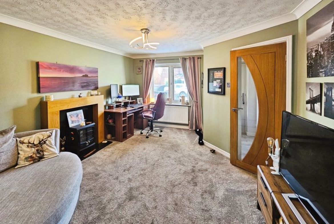 Double glazed window to front, single radiator, fire surround with electric fire, television point, coving to ceiling.
