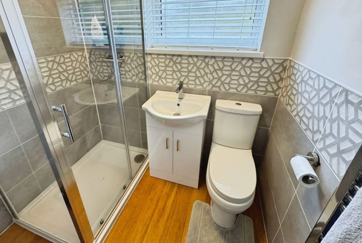 Off the kitchen to the rear is the utility room with plumbing for utilities, countertops, window and door to rear garden but also direct access to the ground floor shower room which has been tastefully finished with heated towel rail included.
