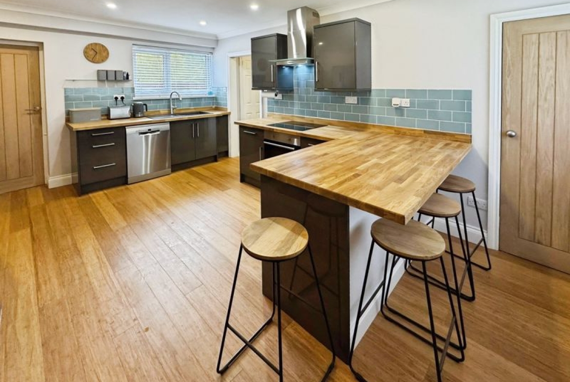 The kitchen and dining room have been opened up to create a bright and airy space to cook and eat together. A further log burner offers another source of cosiness in the winter months.