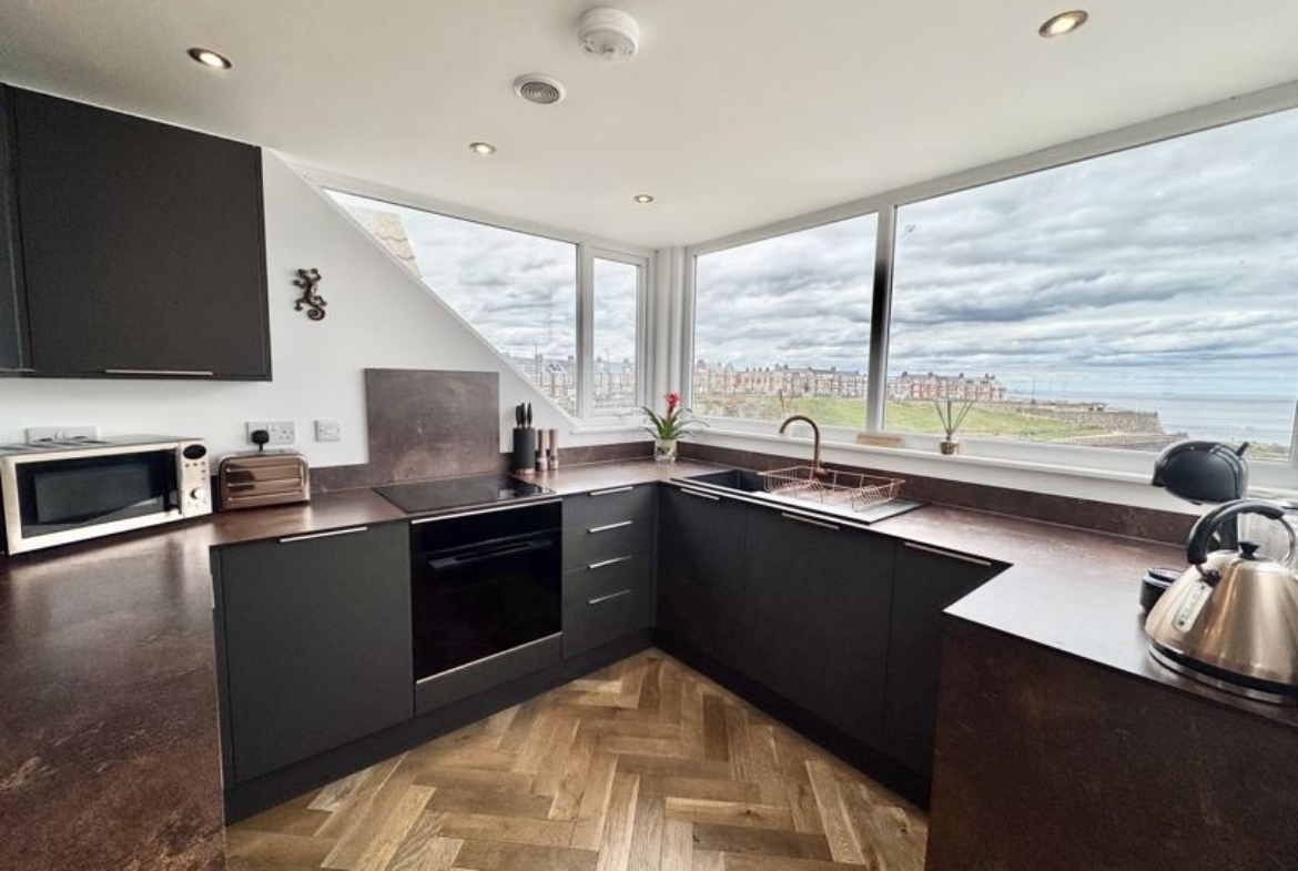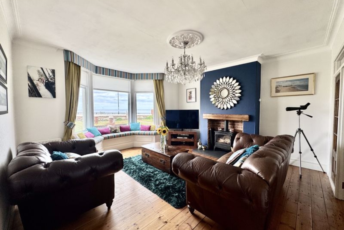 Rarely does an opportunity arise to purchase such a fabulous, pre-war period family home with spectacular, panoramic views from the front towards Whitley Bay lighthouse and to the rear looking across Cullercoats bay and towards Tynemouth Long Sands and Priory Castle. We doubt we would ever leave the house if we had the pleasure of living there, the current owners love spending days and evenings dolphin watching, waking up to stunning sunrises and lit up views in the evening. This lovely home offers the flexibility to accommodate a multitude of potential buyers, with the ground floor having enjoyed accommodating elderly parents, as it has the benefit of a ground floor shower room and bedroom, it could also be perfect for extended or younger family members. Showcasing the most beautiful second floor loft conversion, creating a show stopping open plan second lounge and stylish breakfasting kitchen with appliances. With four Velux Cabrio roof balconies, enjoy your favorite tipple whilst taking in the breathtaking views. Situated close to the beach, local schools, Metro, coffee shops and eateries, what a lifestyle Southcliff offers! This gorgeous house has ample natural light due to the South facing rear aspect, with the owners creating a wonderful, enclosed Mediterranean style town garden with paving, sitting areas, raised borders, pizza oven and log store. To the front is a private and generous front garden, walled and gated overlooking the sea and coast. You are welcomed into the useful entrance porch and impressive hallway, the front facing lounge enjoys a feature bay window with built in window seat, magnificent multi-fuel stove fire, separate dining room with feature fireplace, cast iron arch fire, conservatory overlooking the rear garden. The family kitchen is stylish with integrated appliances, separate utility, Victorian style ground floor shower room and large ground floor double bedroom overlooking the town garden. To the first floor there are three double bedrooms, all with unrivalled views! Luxurious family bathroom with slipper bath and separate shower, en-suite shower room to bedroom two. A perfect Investment Opportunity – Could potentially be converted to two apartments subject to planning permission. One Bedroom Ground Floor and a three Bedroom Maisonette. We are truly lost for words, all we can say is don’t delay, we would hate you to miss the opportunity! Freehold. EPC:C, Council Tax Band: D. Gas, Electric, Water, Heating, Drainage: Mains connected. Broadband: Ask Agent. Mobile Phone Blackspot: