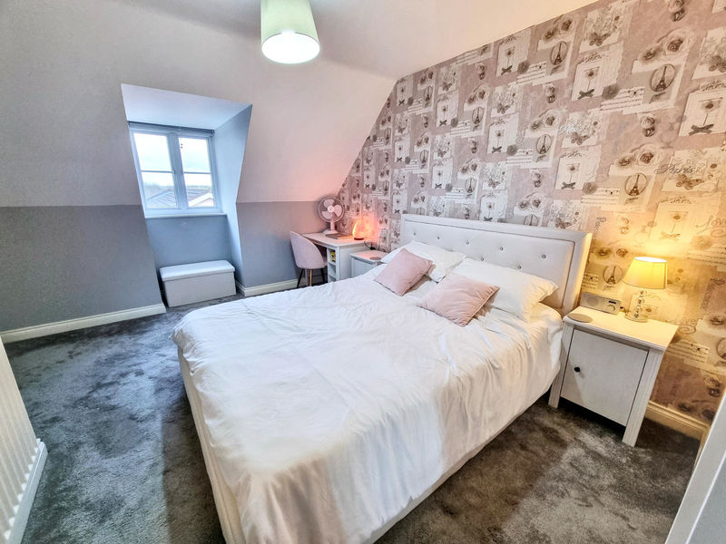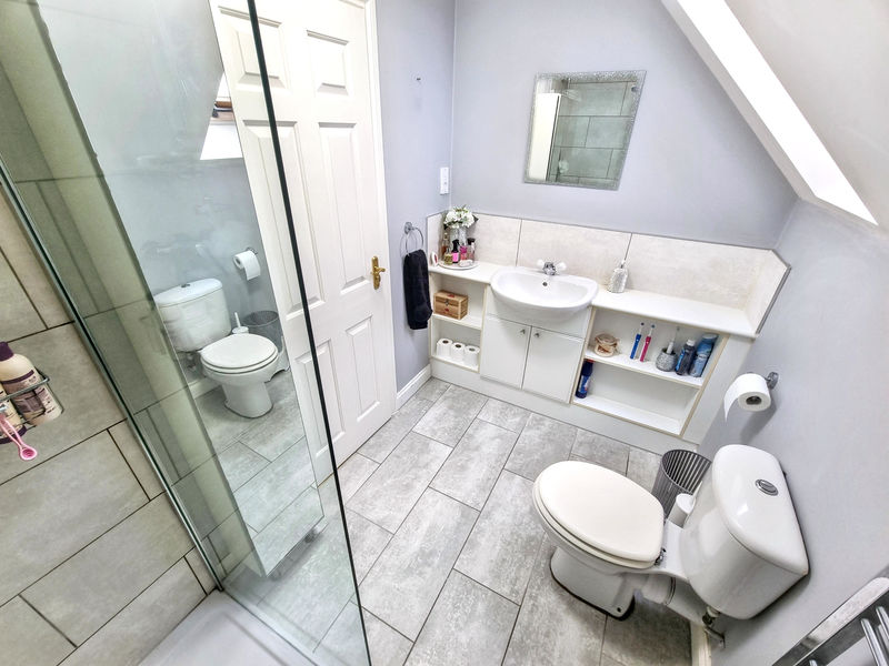 To the first floor are two generously sized bedrooms along with a modern family bathroom/W.C. The second floor is dedicated to an impressive principal bedroom, complete with its own shower room/W.C., offering a private and peaceful retreat.