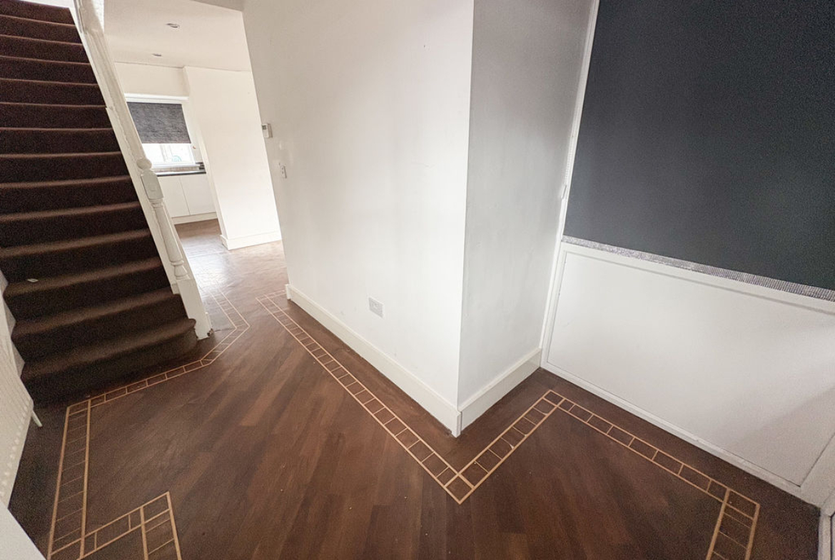 ENTRANCE HALLWAY: stairs to first floor landing, and double radiator.