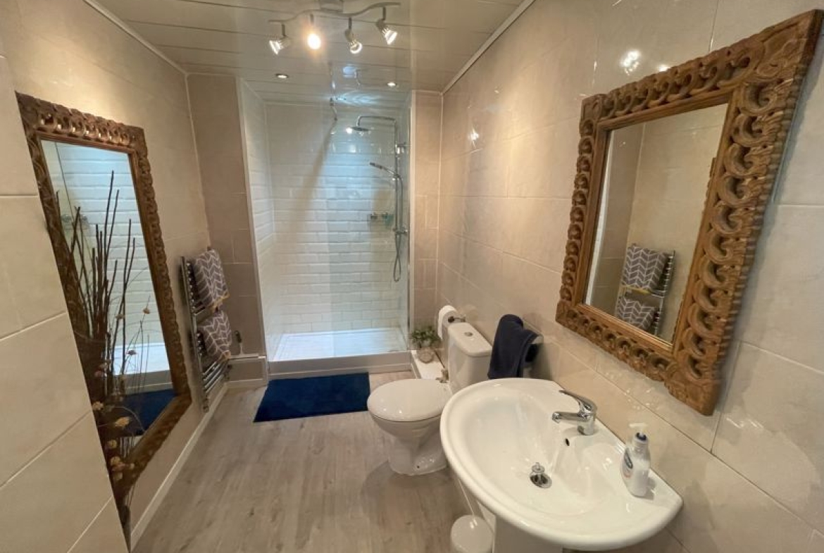 w.c, spotlights to ceiling, windows to front, heated towel rail, and