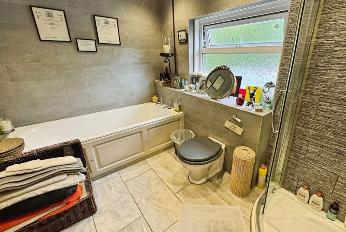 The first floor comprises: landing, four bedrooms with en-suite shower/wc to one and family bathroom/wc with white four-piece suite incorporating both bath and shower.