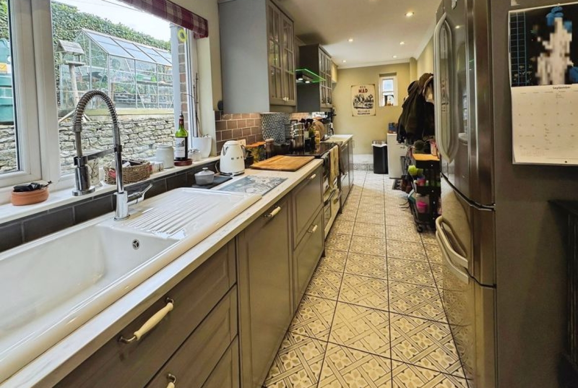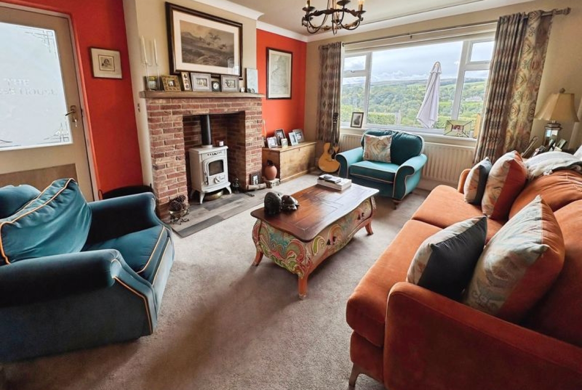 The second reception room is particularly welcoming with its door to garden and brick-built fireplace with inset cast iron wood burning stove.