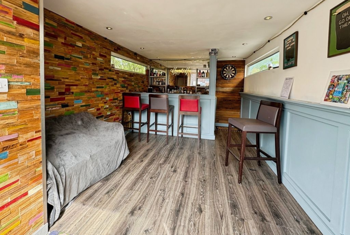 Externally the property features an enclosed garden to the front that basks in sun light complete with patio and mature trees. To the rear there is off street parking for several vehicles and decked area leading to the garden room complete with bar area a superb space for all fresco dining and entertaining family and friends.