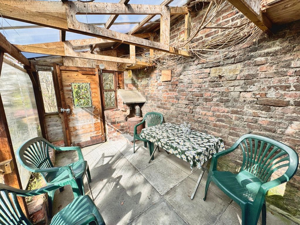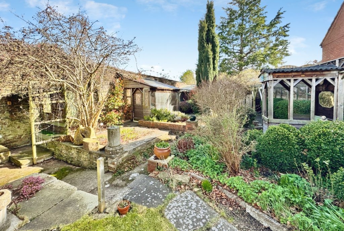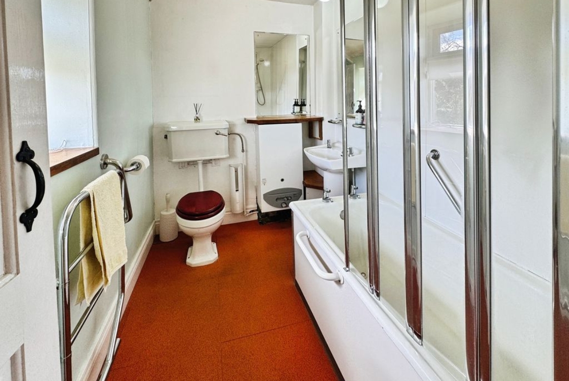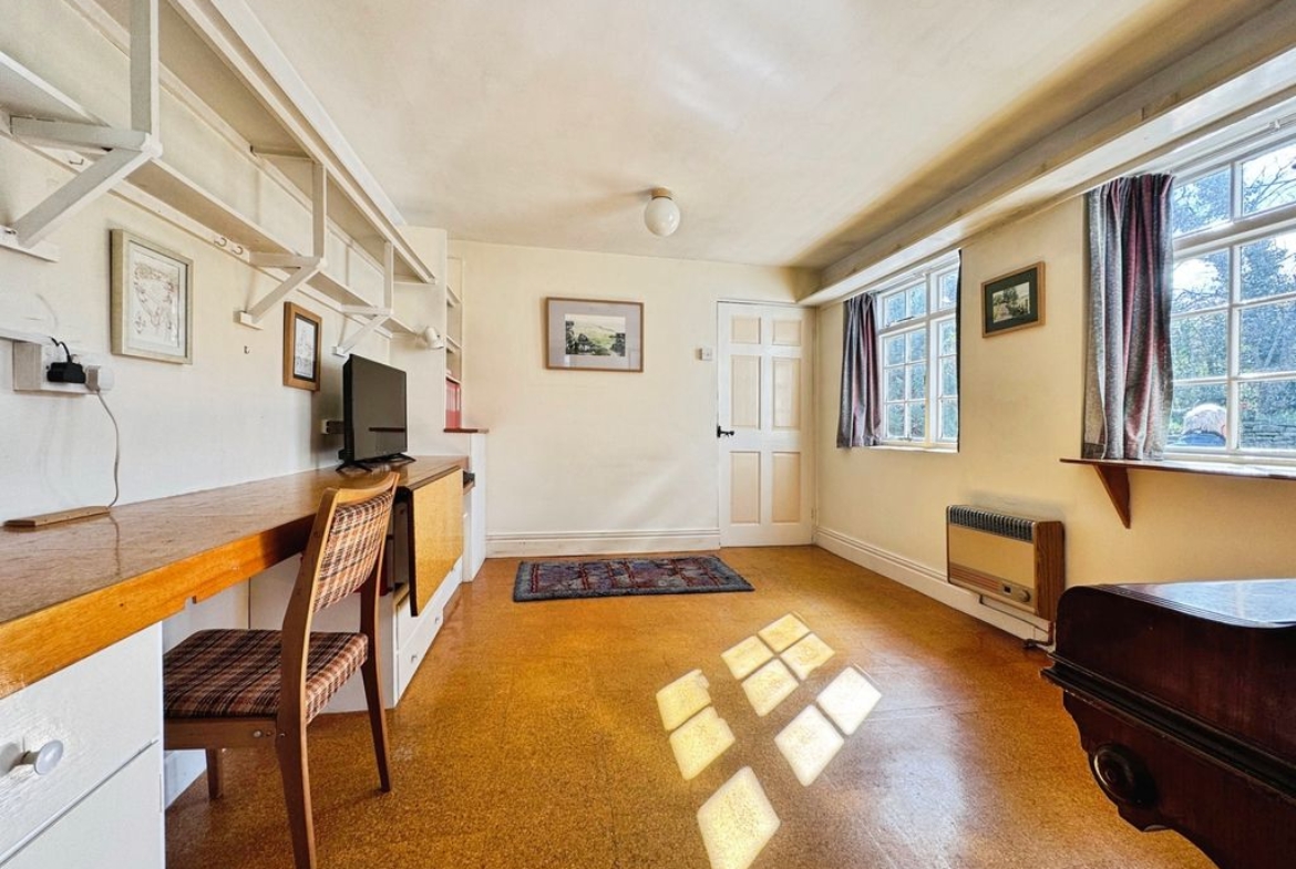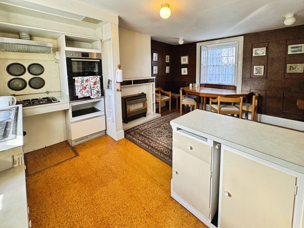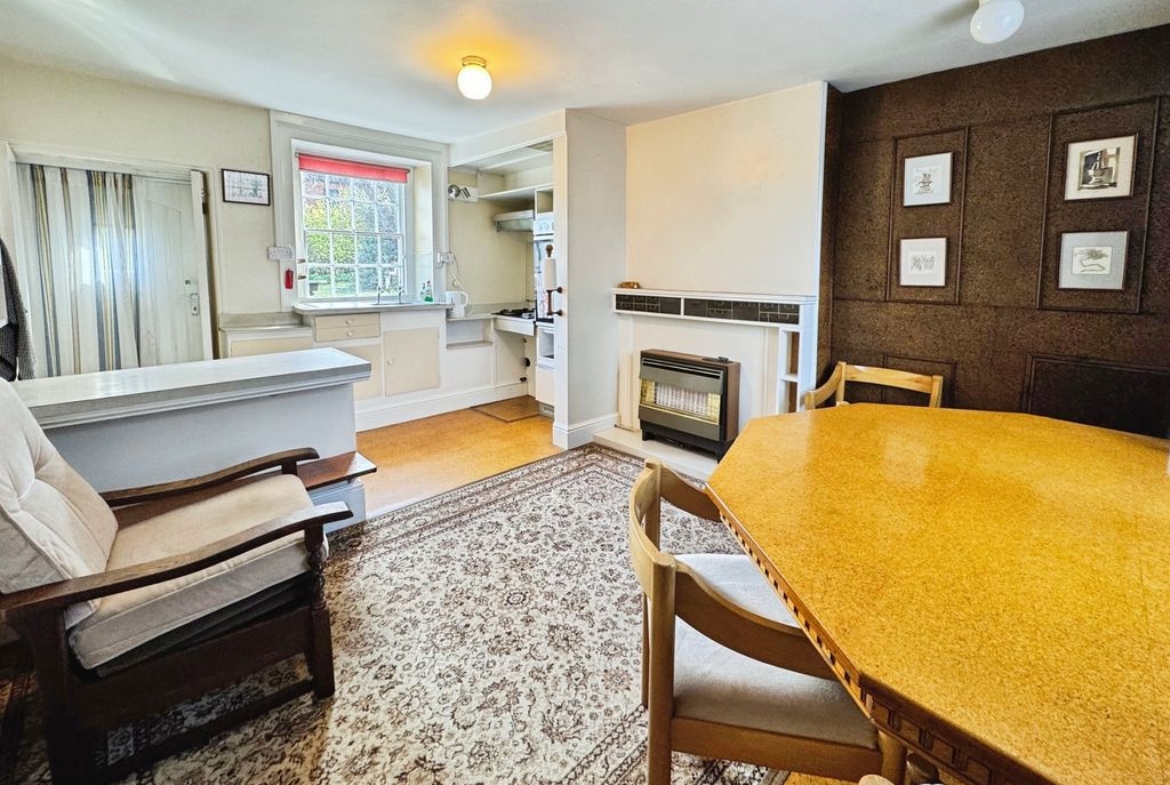 Accommodation includes two reception rooms, one featuring an inglenook fireplace and the other offering versatile space for a dining room, home office or additional sitting room. The kitchen includes built-in pantries and a breakfast area. There are three bedrooms, two doubles with built-in wardrobes and a further single bedroom. The main bathroom provides a shower over bath, complemented by a downstairs shower room. Externally, the cottage benefits from expansive walled gardens, a garage, workshop and studio, offering considerable scope for a range of uses subject to any necessary consents.