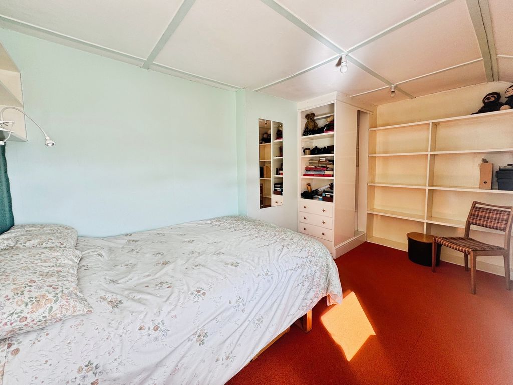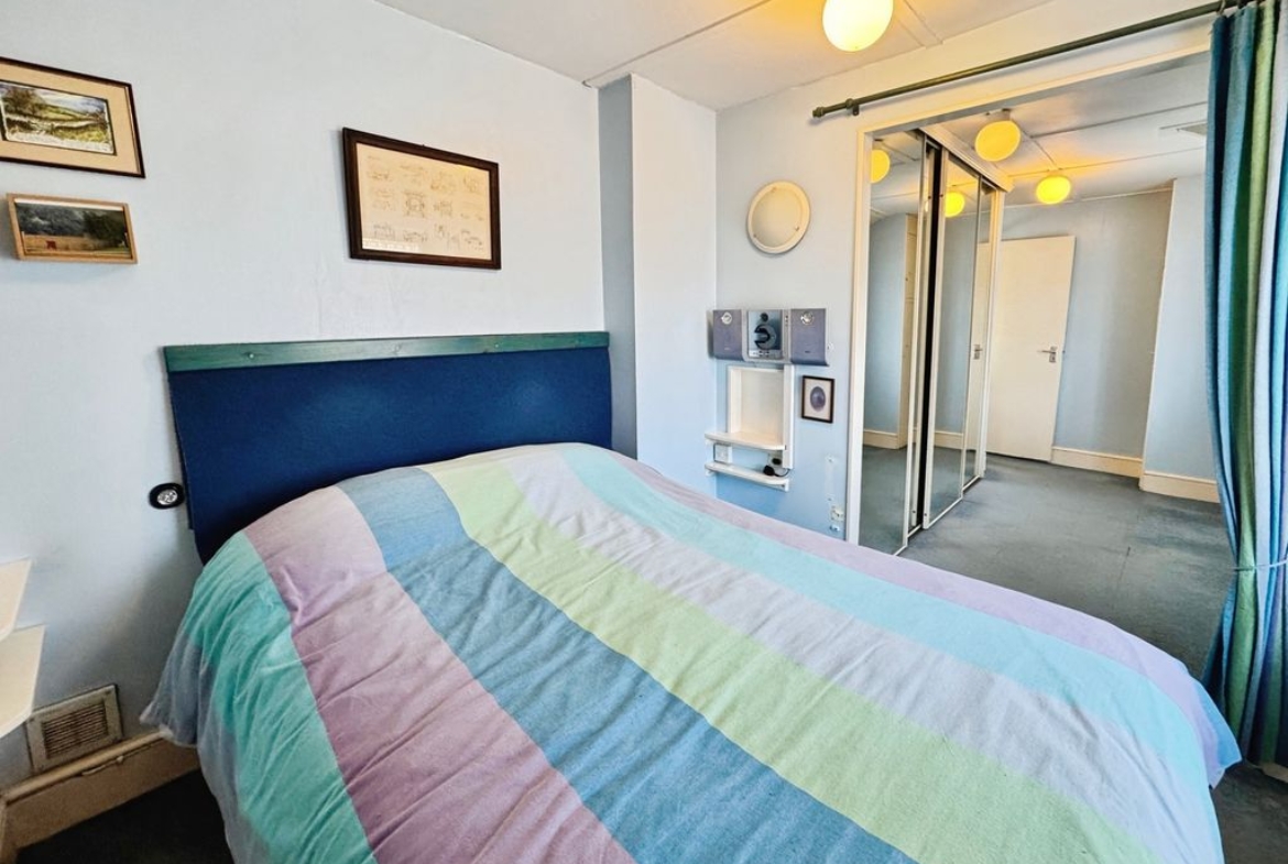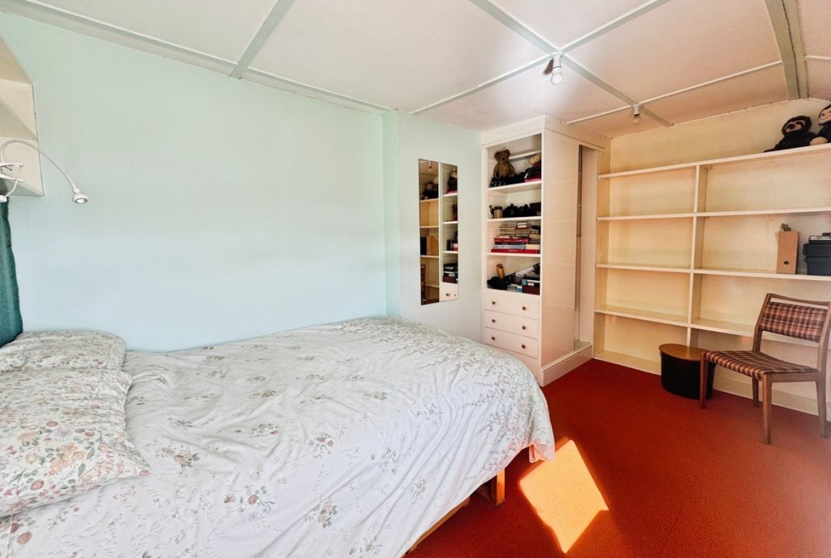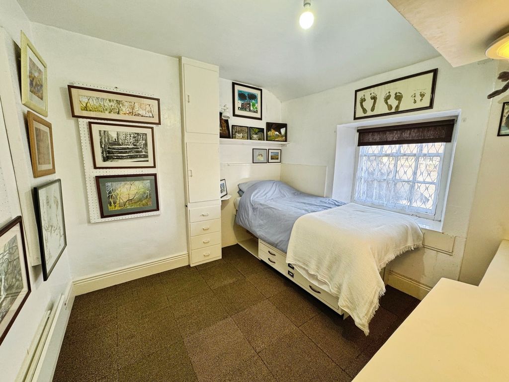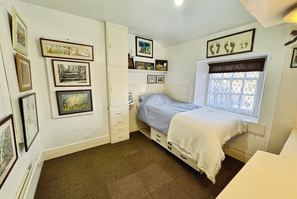 Single glazed wood frame window, fitted storage and electric wall mounted heater.