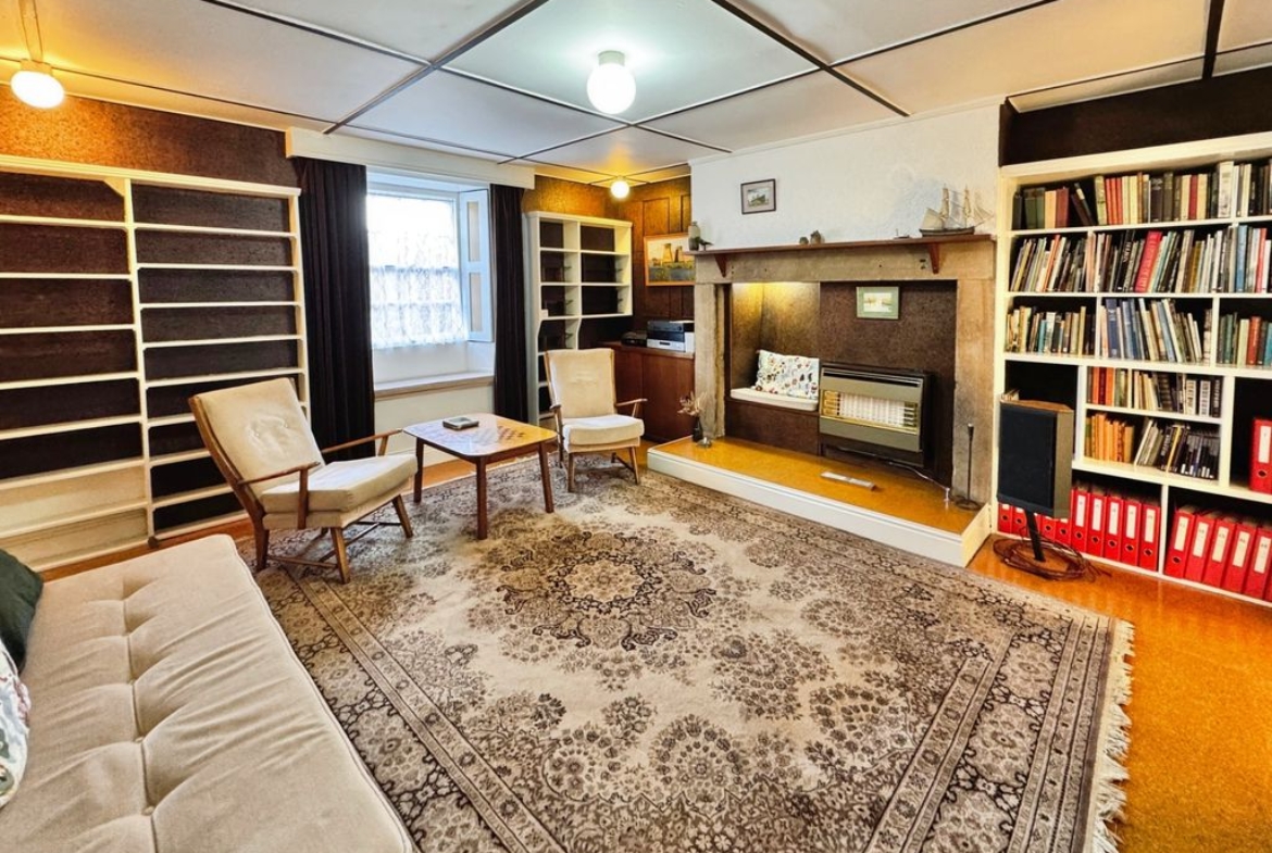 Single glazed wood frame window to the front with shutters, window seat, Inglenook fireplace, gas fire.