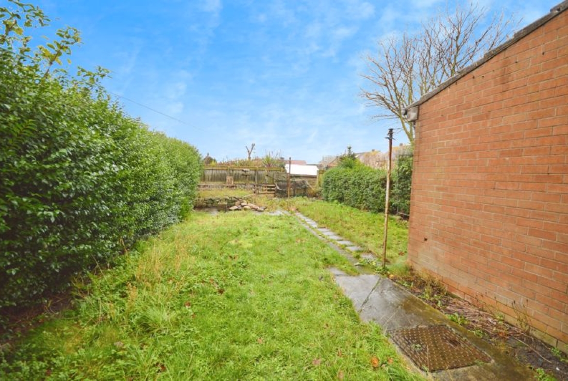 The rear garden is mainly laid to lawn with a patio area | Fenced and hedge boundaries.