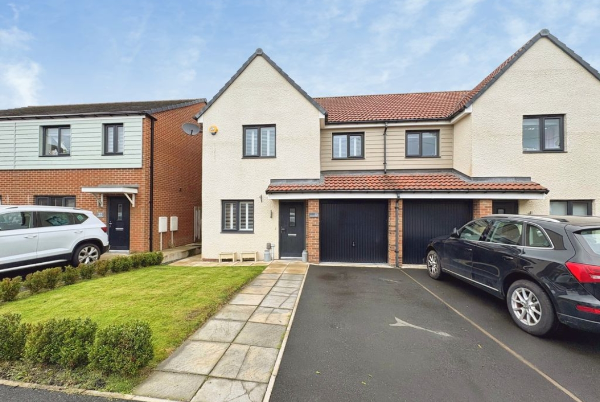Presenting an immaculate semi detached home on Swallow Drive, a highly sought after development in Holystone, within easy access to the A19, public transport links and schools making it perfect for young professionals and families alike. Step inside the impressive home and you are greeted with a lovely lounge to the front ideal for relaxing, this leads to a rear hallway and access to the useful guest w.c. The real show stopper is the superb open plan dining kitchen to the rear boasting a contemporary range of wall and base units and integral appliances. The French doors provide direct access to the rear garden and flood the room with natural light making it a vibrant and airy space ideal for cooking and entertaining. Upstairs the property boasts three generously sized bedrooms, a stylish En suite and family bathroom. Externally you will find well kept gardens to front and rear plus off street parking leading to integral garage. This an excellent opportunity to acquire this superb home with many upgrades from new in 2019 and with the added benefit of the remaining NHBC, an early inspection is a must to secure.